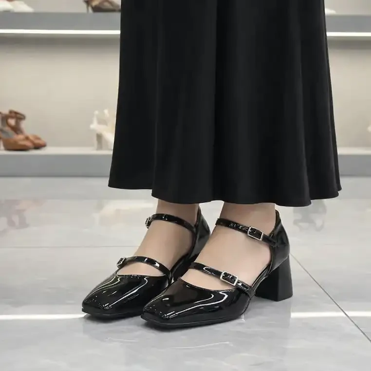 کفش عروسکی پاشنه دار شیک ورنی براق بابت و کالج مجلسی زنانه ( 964 )