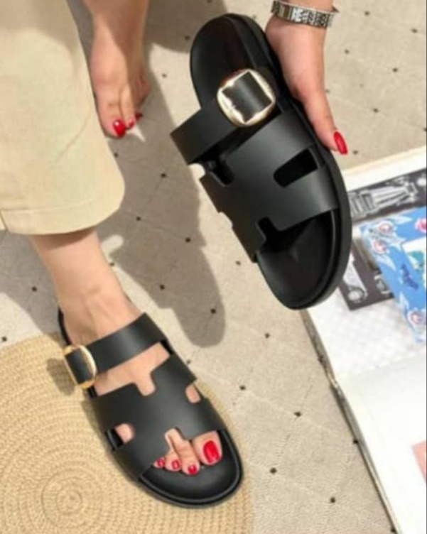 صندل هرمس شیک و راحت مشکی و کرم کفش تابستانی زنانه ( 966 )