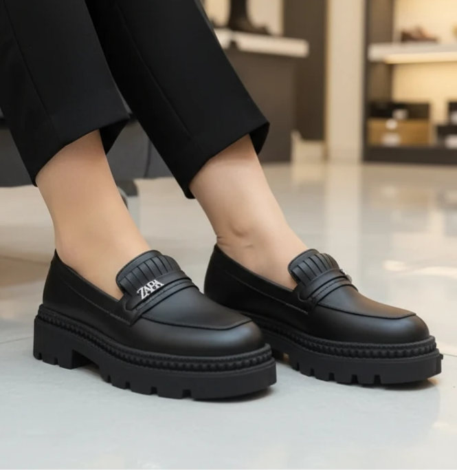 کالج شیک لژدار مشکی مات زارا طبی چرم مجلسی لوفر زنانه ( 967 )