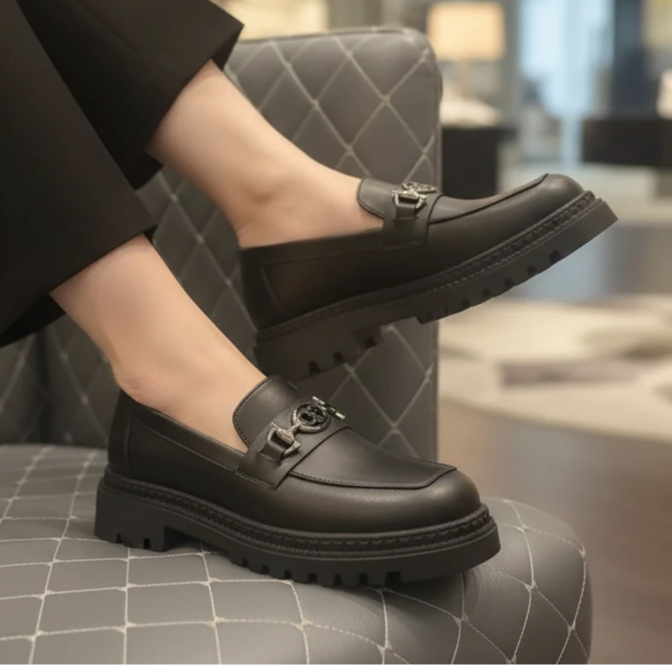 کالج شیک لژدار مشکی چرم مات راحتی کفش لوفر زنانه( 968 )