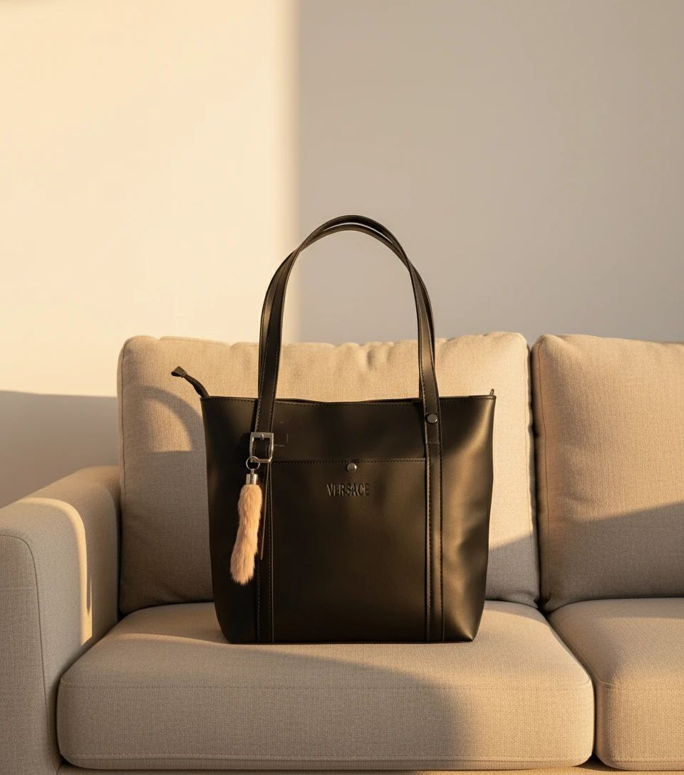 کیف بزرگ و جادار مشکی چرم ورساچ دوشی و دستی زنانه ( 971 )