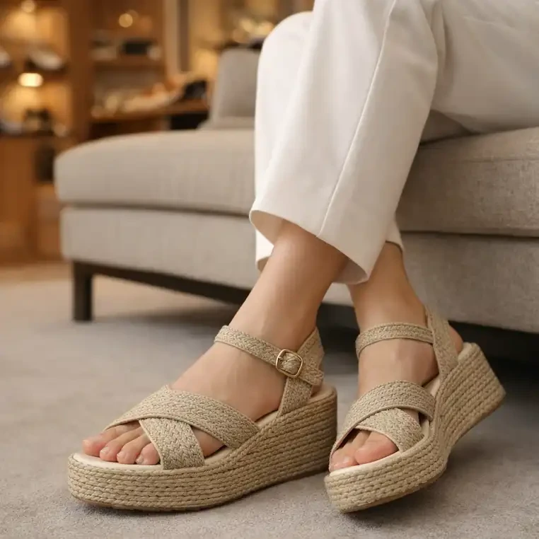 صندل کنفی شیک و ساده لژدار کفش تابستانی حصیری زنانه ( 979 )