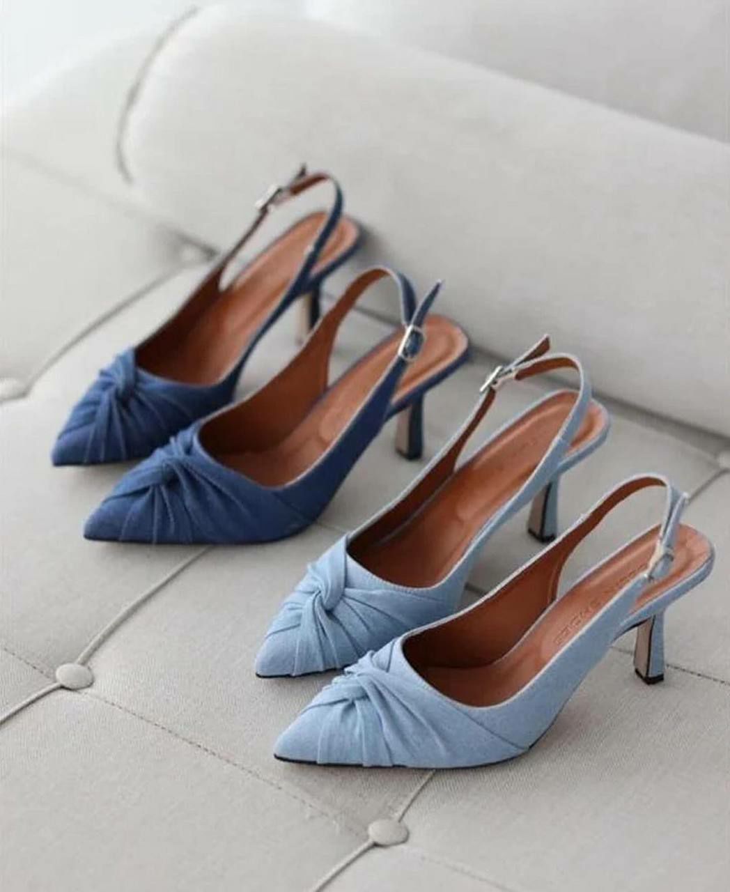 صندل لی روشن و تیره شیک ترند مجلسی کفش جین آبی پاشنه بلند زنانه ( 998 )
