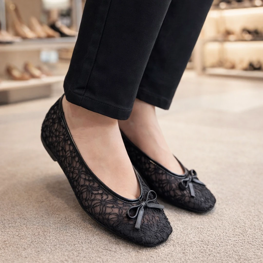 بابت گیپور شیک مجلسی مشکی و شیری توری پاپوش پاپیونی زنانه ( 997 )