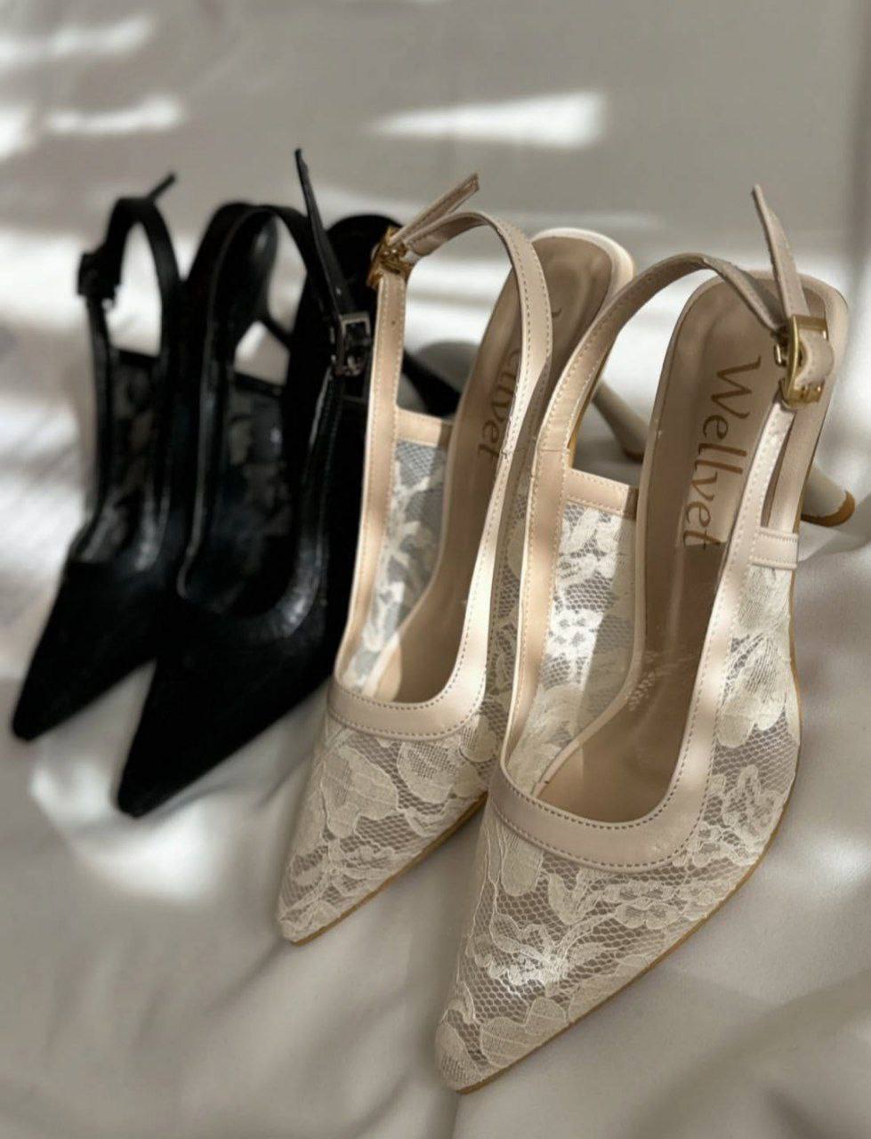 صندل گیپور شیک مشکی و کرم پاشنه بلند مجلسی کفش توری حریر زنانه ( 992 )