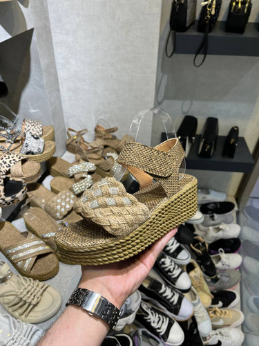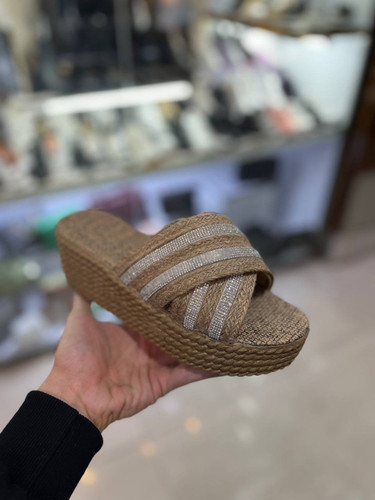 صندل کنفی شیک لژدار نگیندار مجلسی سبک و راحت کفش حصیری نگینی ( 7000 )