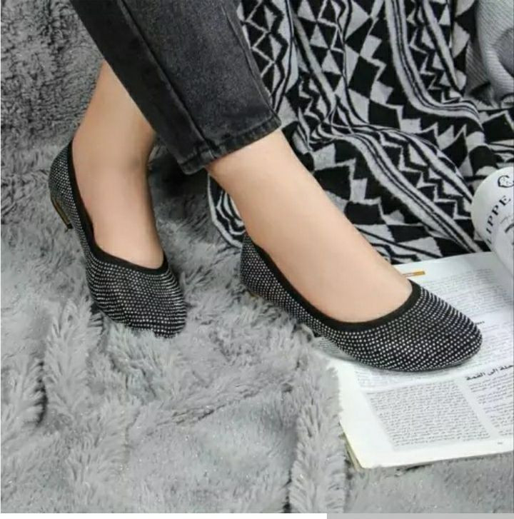 بابت توری و نگین دار مجلسی شیک پاپوش ونس کالج کفش نگینی زنانه ( 336 )