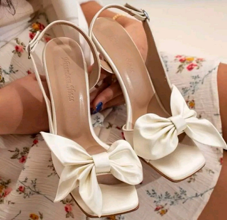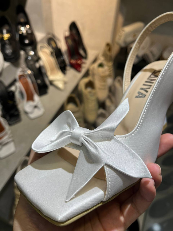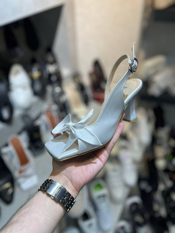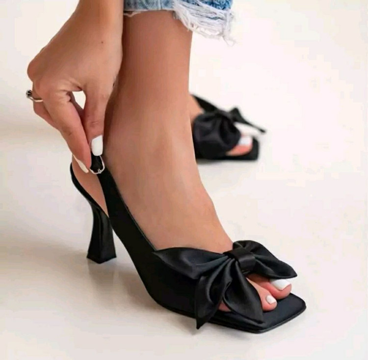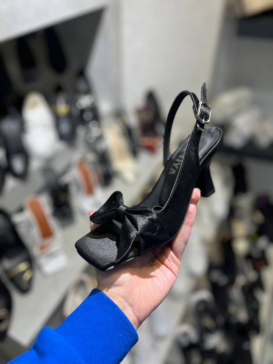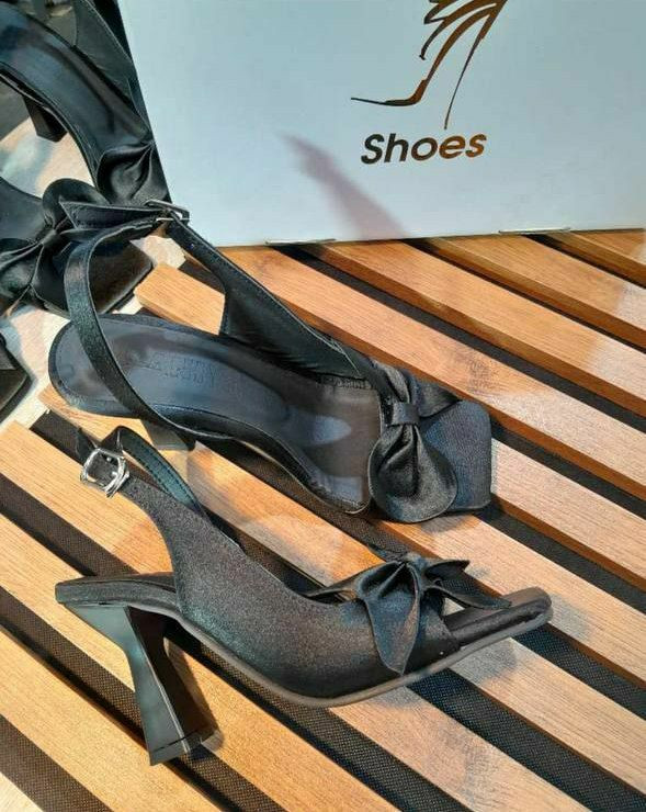 صندل پاپیونی ساتن پاشنه دار مشکی سفید زنانه کفش پاپیون پاشنه بلند مجلسی ( 448 )