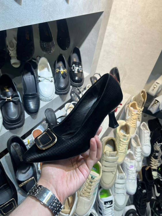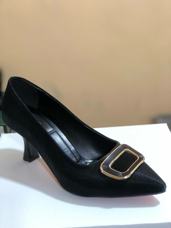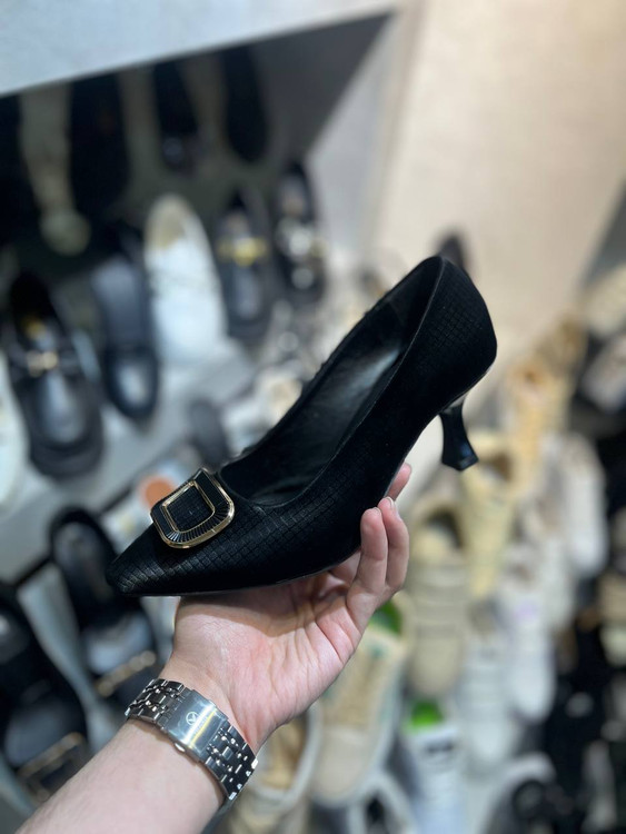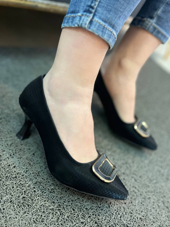 کفش پاشنه بلند ساتن مشکی شیک زنانه استلتو لودشکا مجلسی ( 455 )