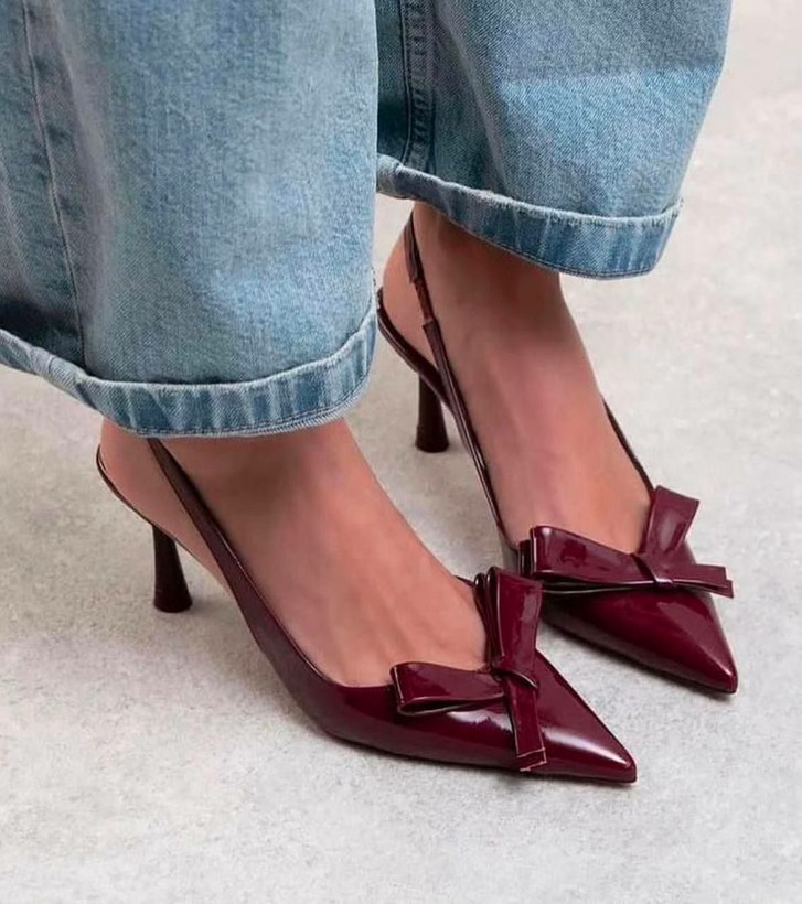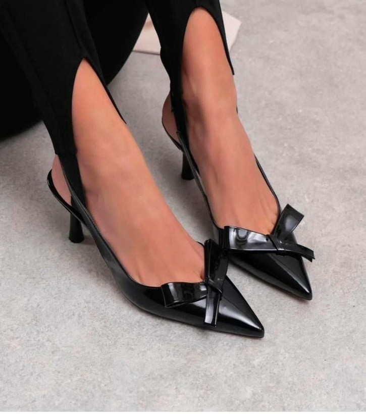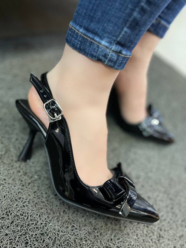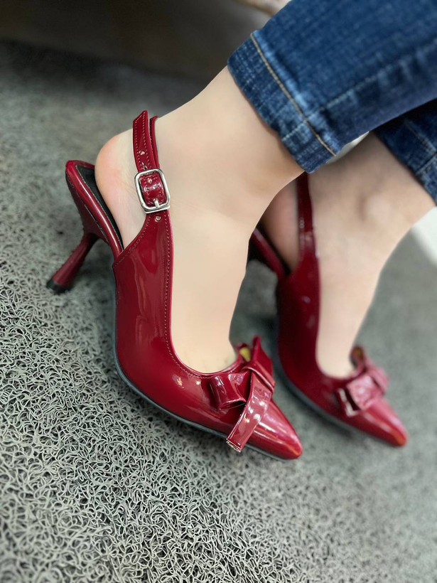 صندل پاپیونی ورنی مشکی کرم زرشکی زنانه دخترانه کفش مجلسی پاشنه بلند شیک چرم براق ( 492 )
