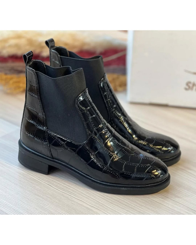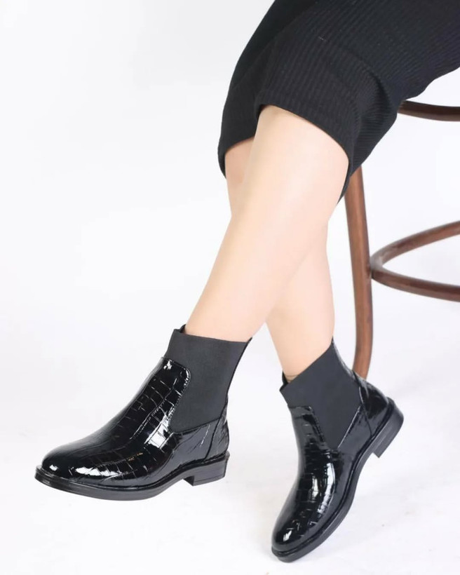 نیمبوت ورنی زارا پوتین کفش مشکی نیم بوت براق طبی شیک لژدار ( 1200 )