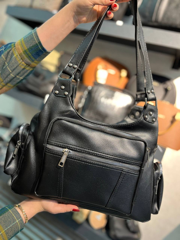 کیف دوشی و دستی چرم مشکی جادار و بزرگ زنانه دخترانه ( 567 )