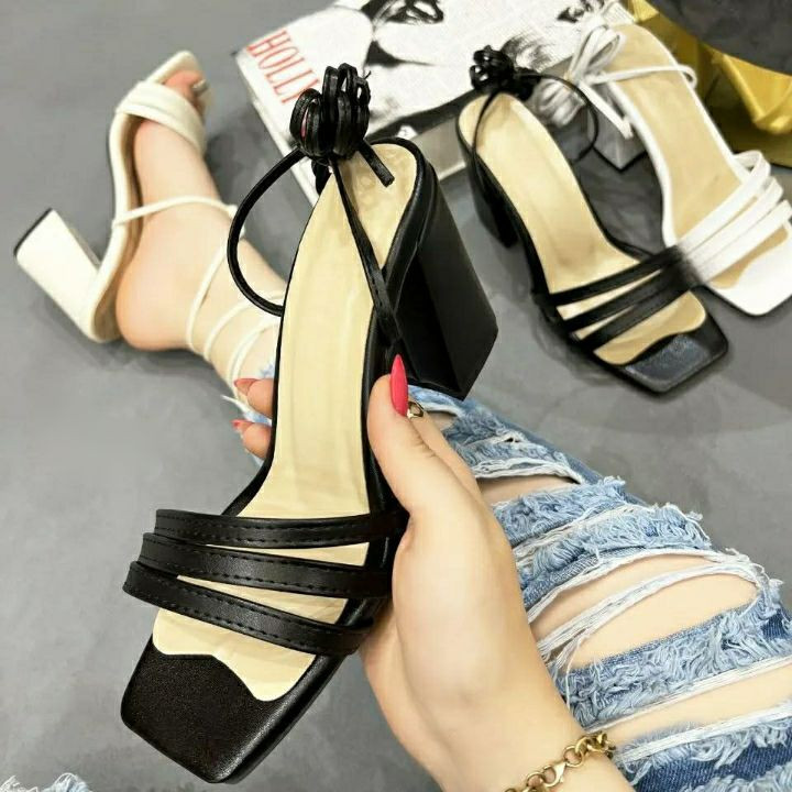 صندل بندی مشکی و سفید پاشنه بلند شیک مجلسی زنانه کفش تابستانی ( 3039 )