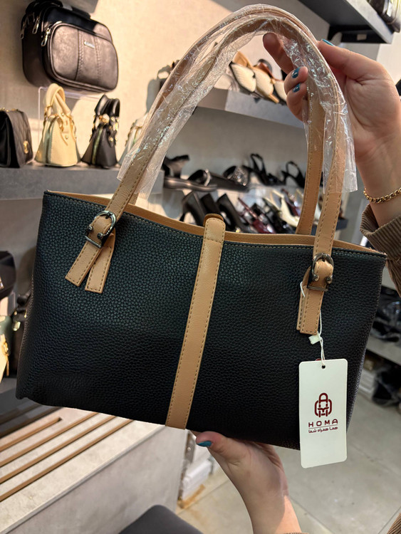 کیف دوشی جادار شیک مشکی قهوه ای و کرم دوشی دستی زنانه ( 505 )