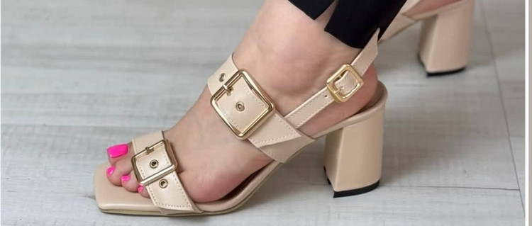 صندل سگکدار شیک پاشنه بلند مشکی کرم عسلی کفش تابستانی ( 39 )