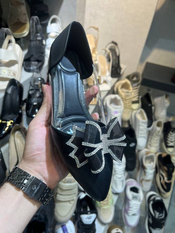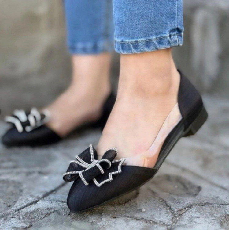 کالج طلقی پاپیونی مشکی و کرم شیک مجلسی زنانه بابت پاپوش نگیندار ( 1524 )
