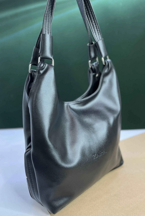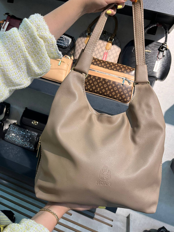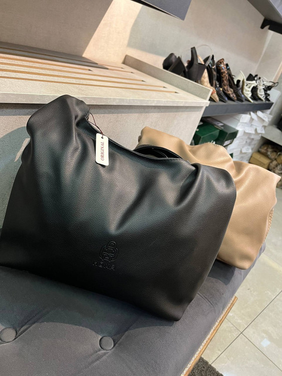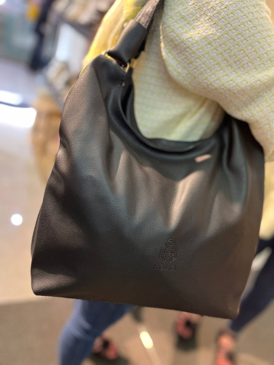 کیف بزرگ‌ و جادار مشکی و کرم شیک زنانه چرم دانشجویی ( 1531 )