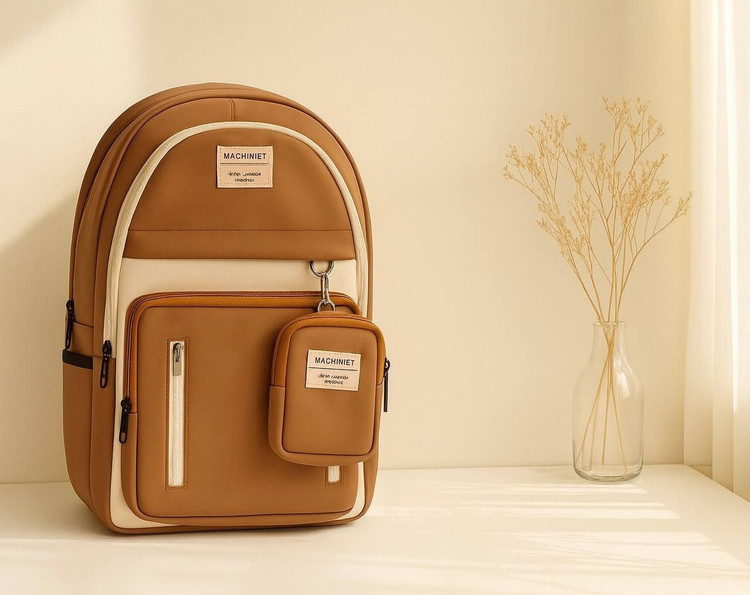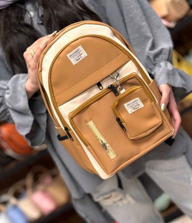 کوله پشتی وارداتی ضد آب شیک زنانه دخترانه کیف دانشجویی مشکی و عسلی ( ۲۰۲۰ )