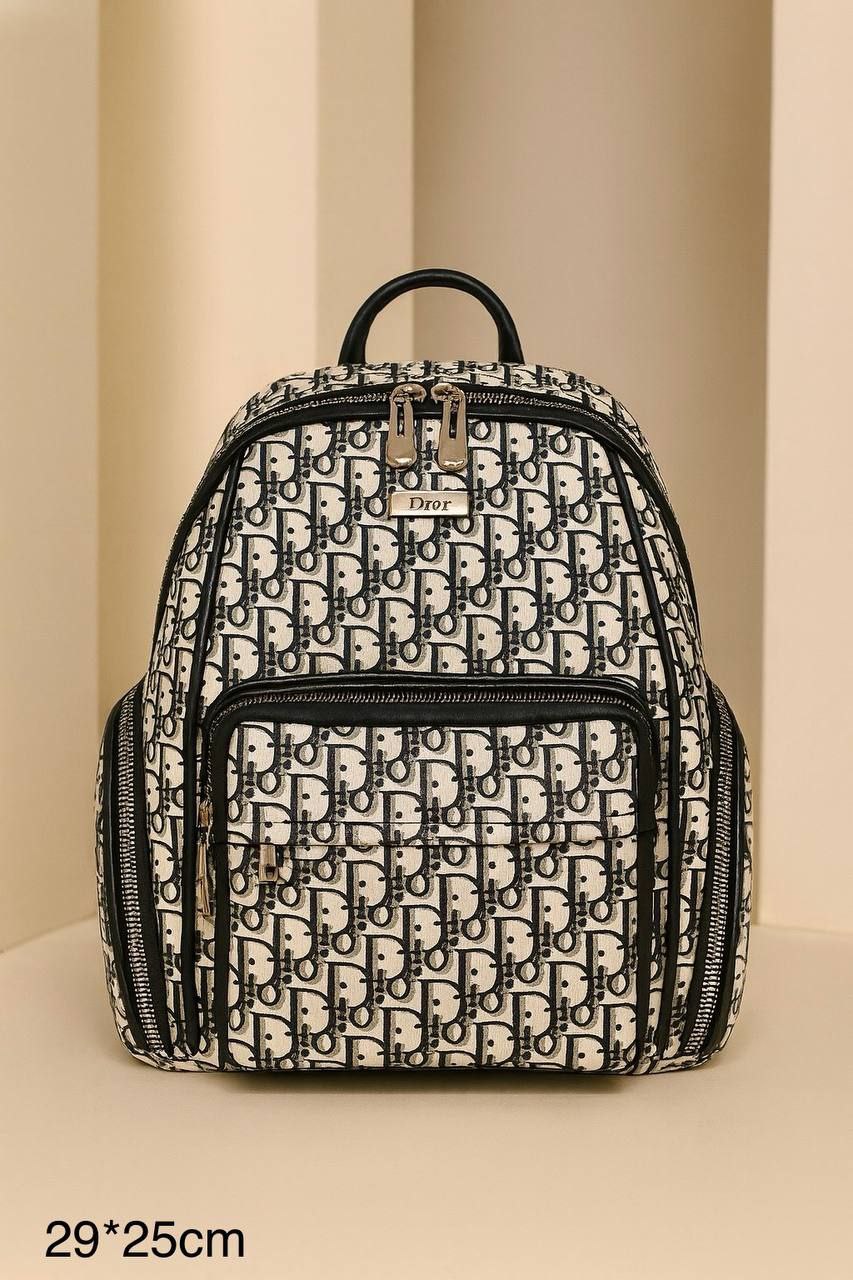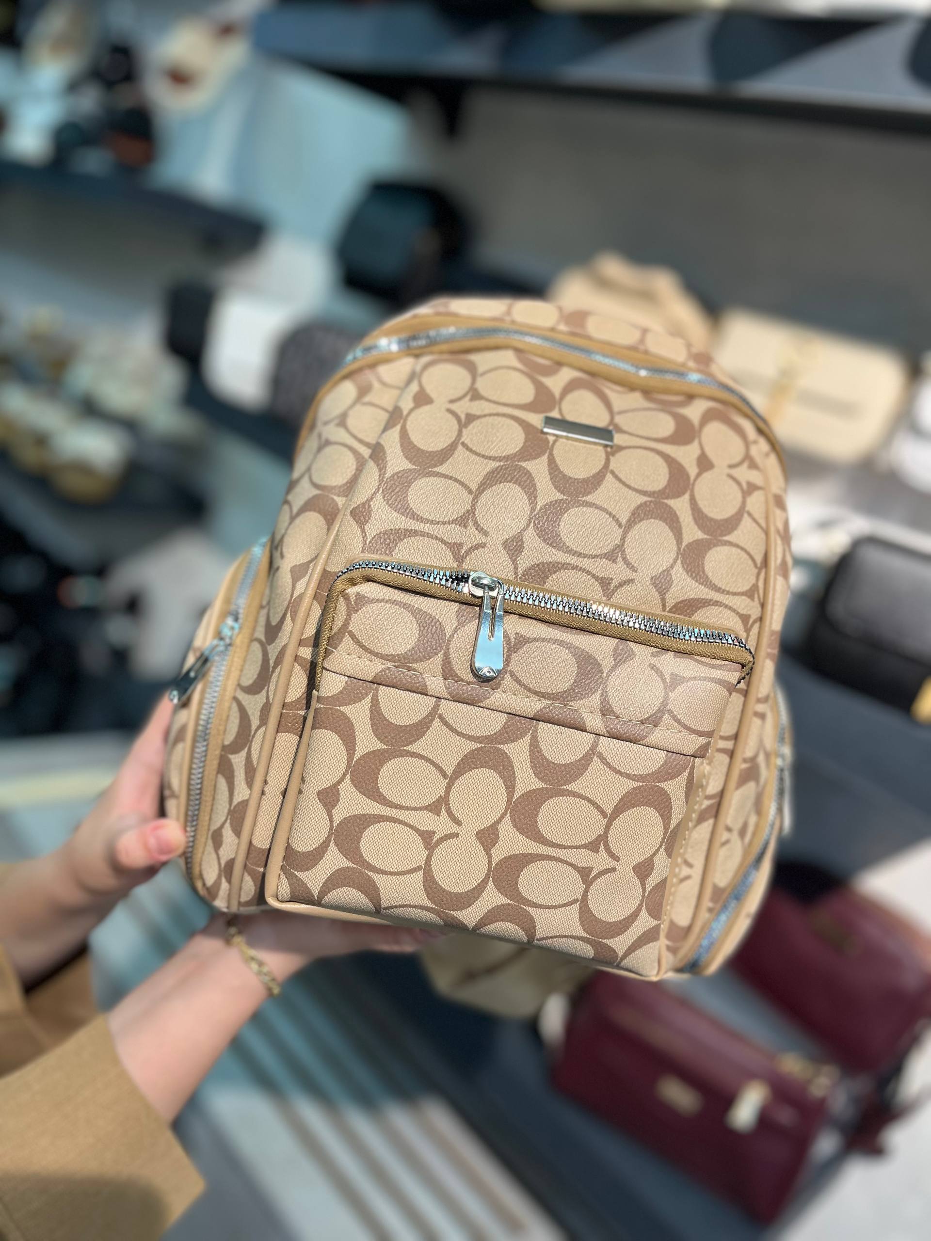کوله پشتی شیک و فانتزی طرح کوچ و دیور مشکی و کرم جادار زنانه دخترانه کیف دانشجویی ( 3007 )