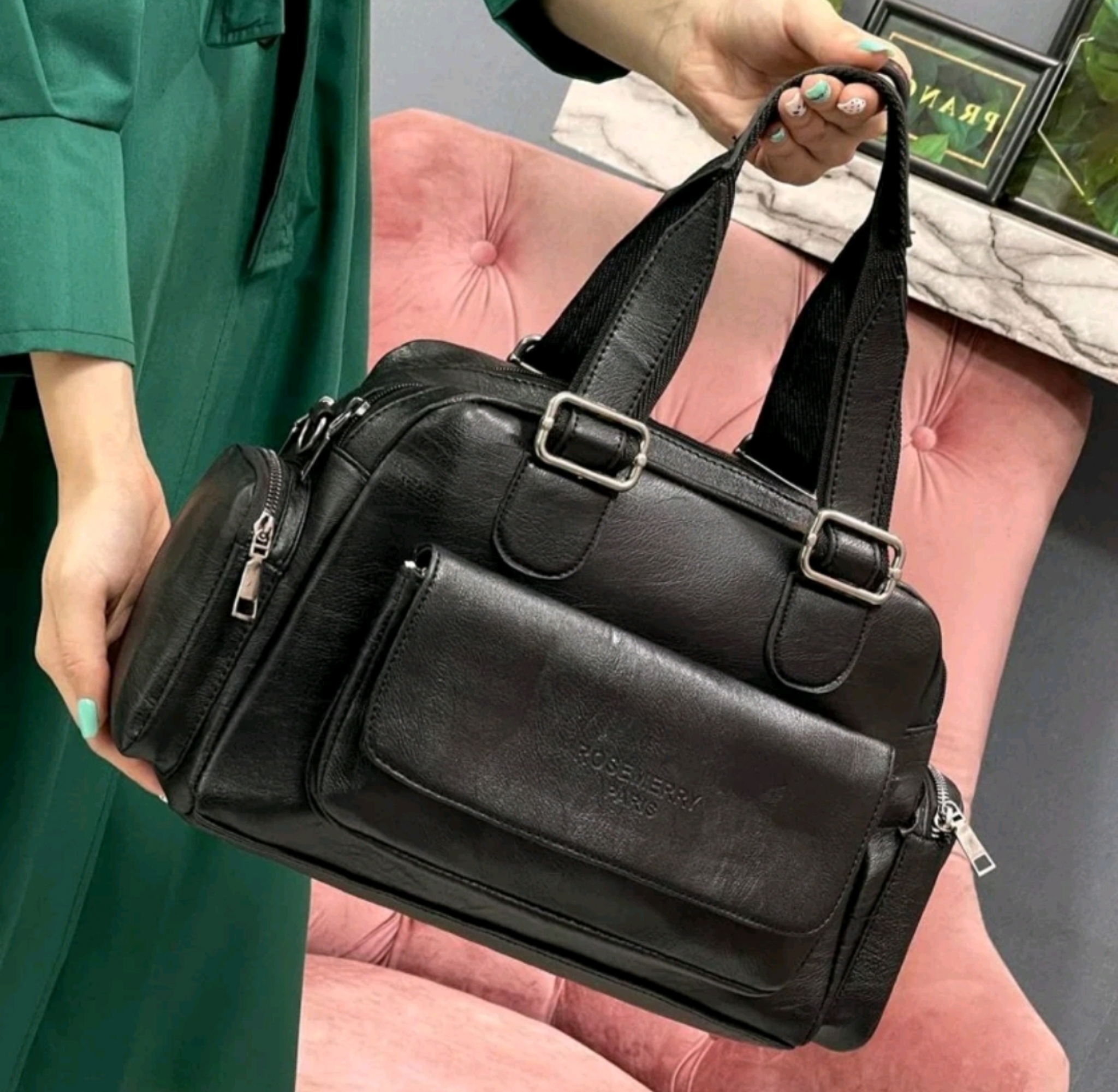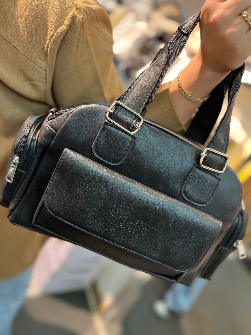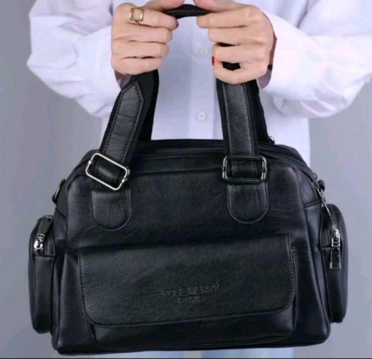 کیف دوشی و دستی بزرگ و جادار شیک مشکی چرم زنانه دخترانه ( 3008 )