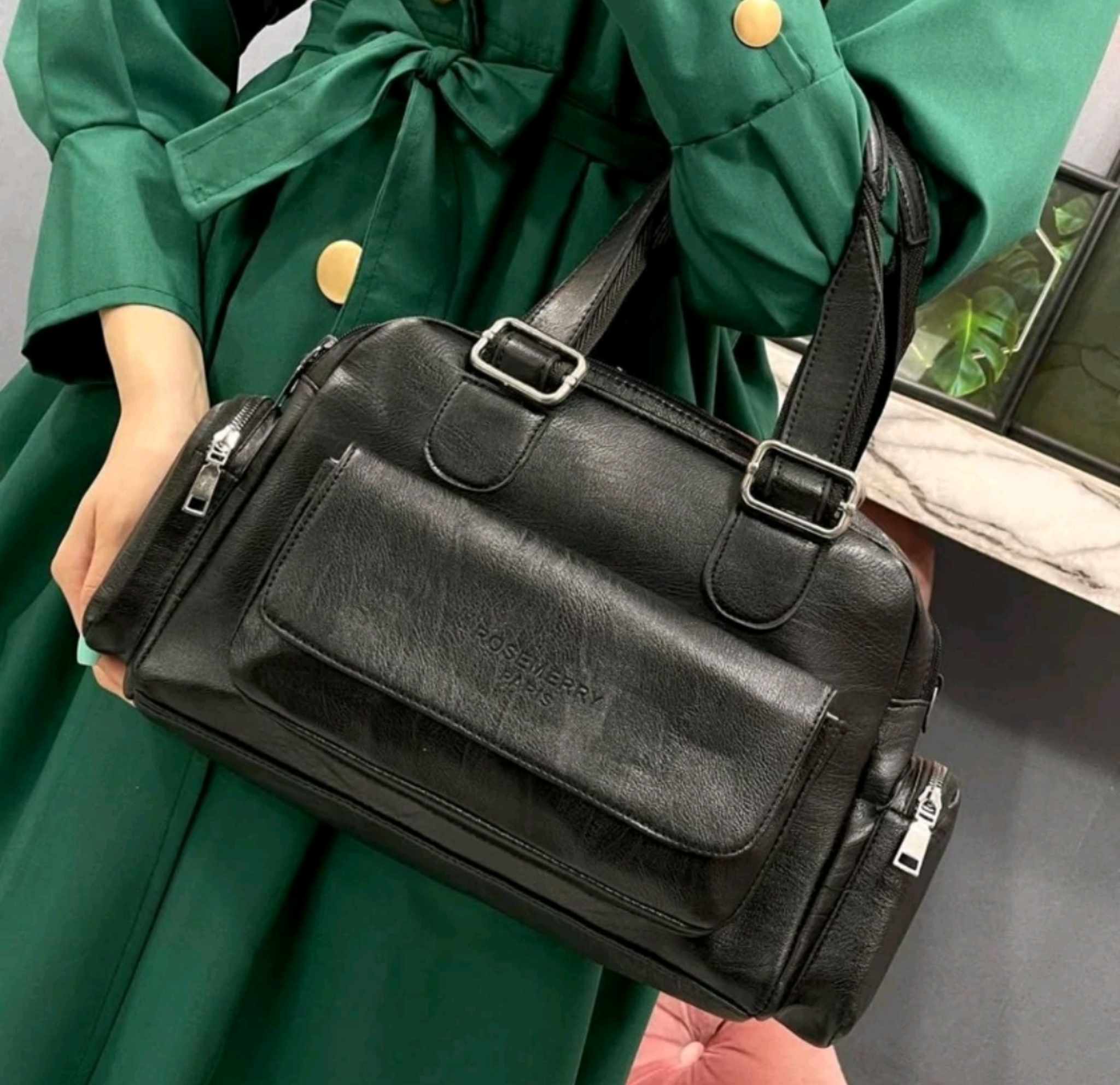 کیف دوشی و دستی بزرگ و جادار شیک مشکی چرم زنانه دخترانه ( 3008 )