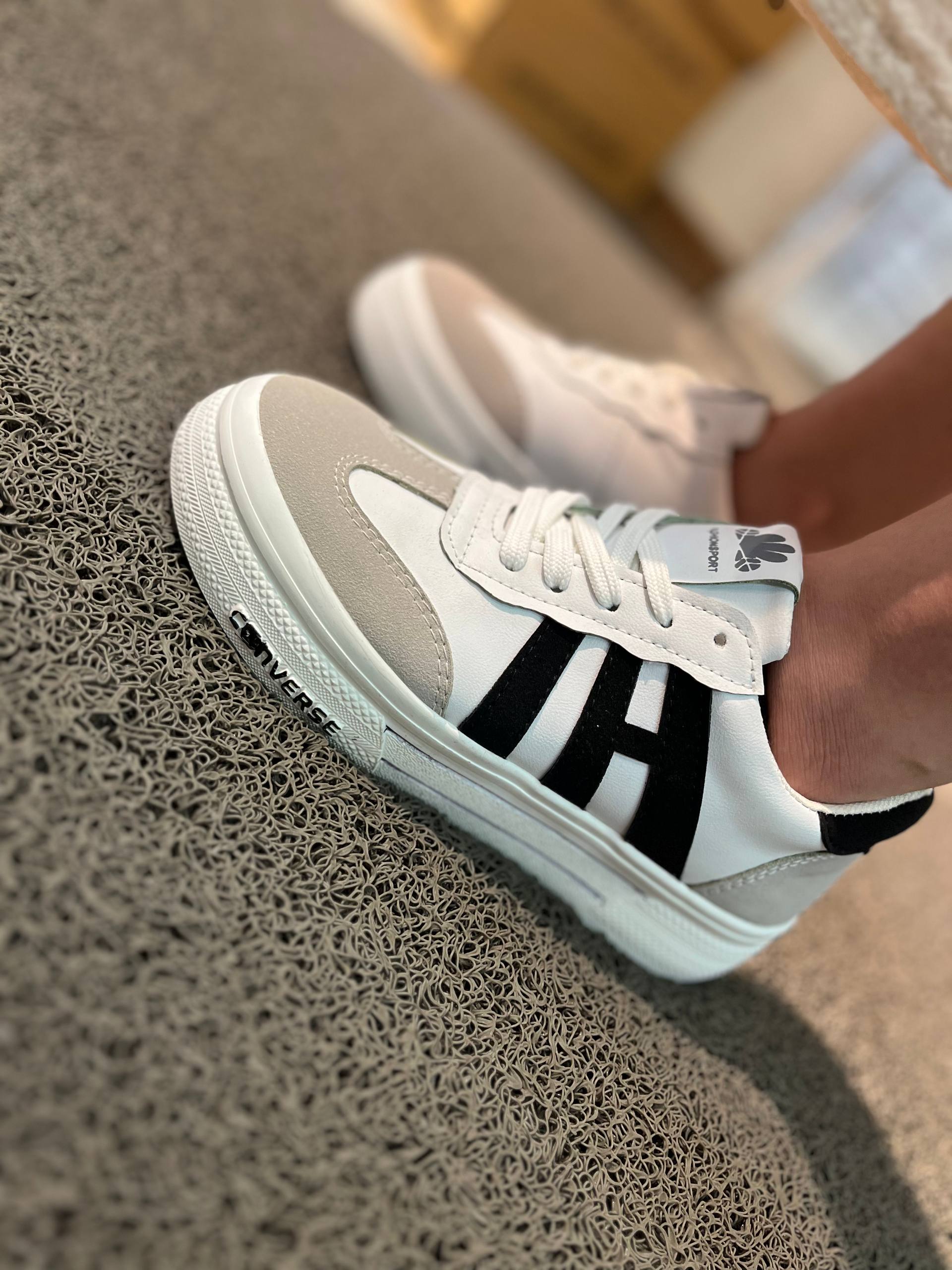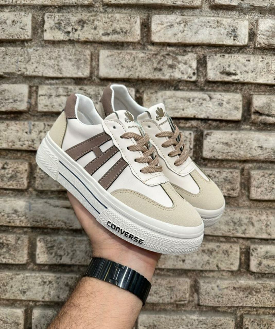ونس کانورس شیک لژدار طبی مشکی کرم سفید کتونی کفش زنانه دخترانه ( 3015 )