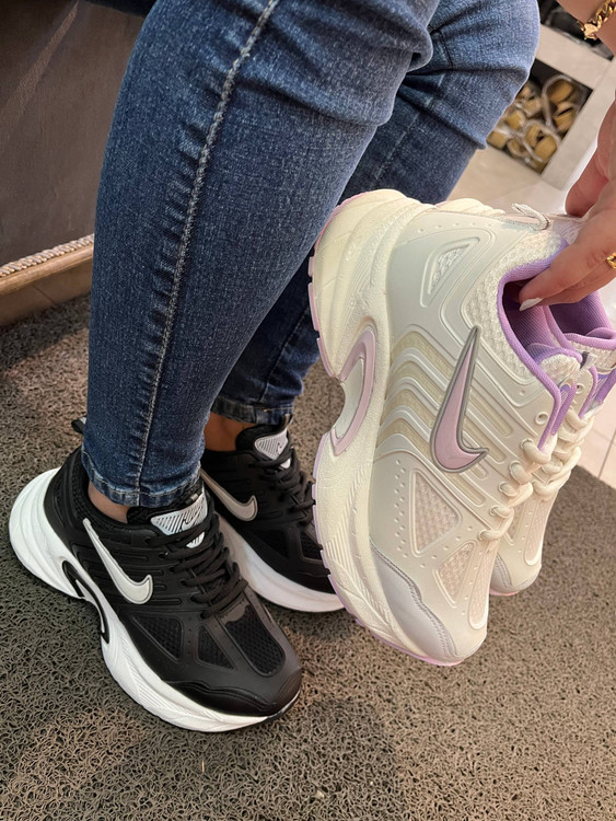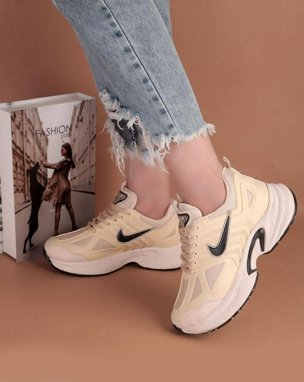 کتونی نایک شیک لژدار مشکی سفید کرم طبی چرم زنانه دخترانه کفش ونس NIKE اسپرت ( 438 )