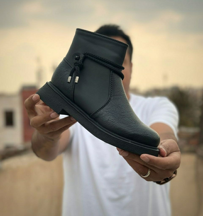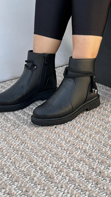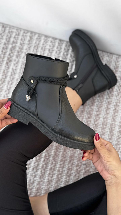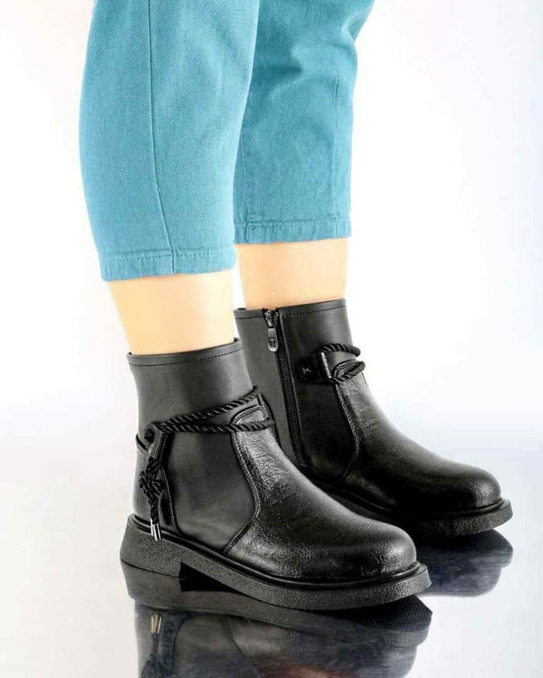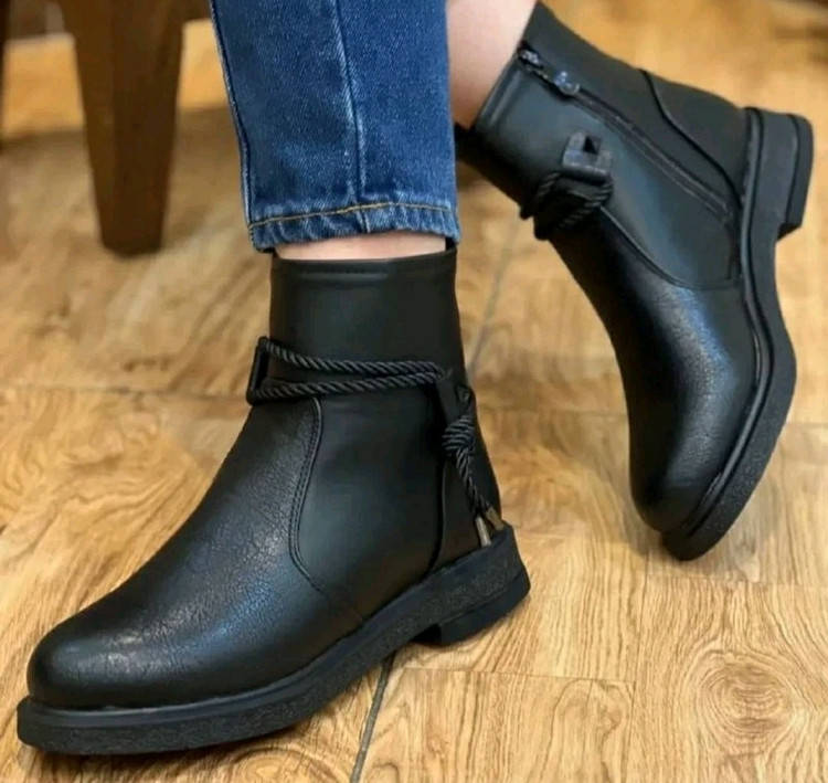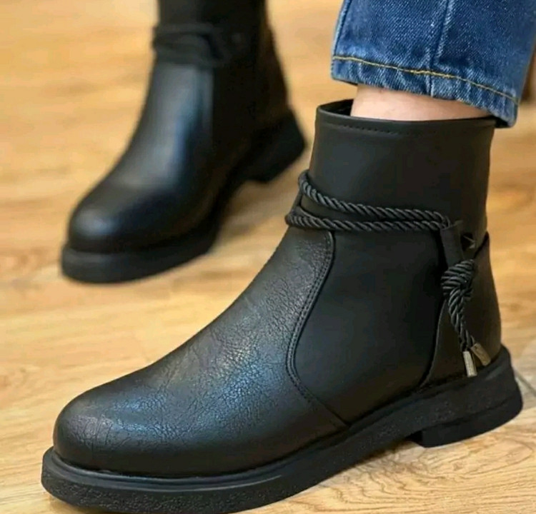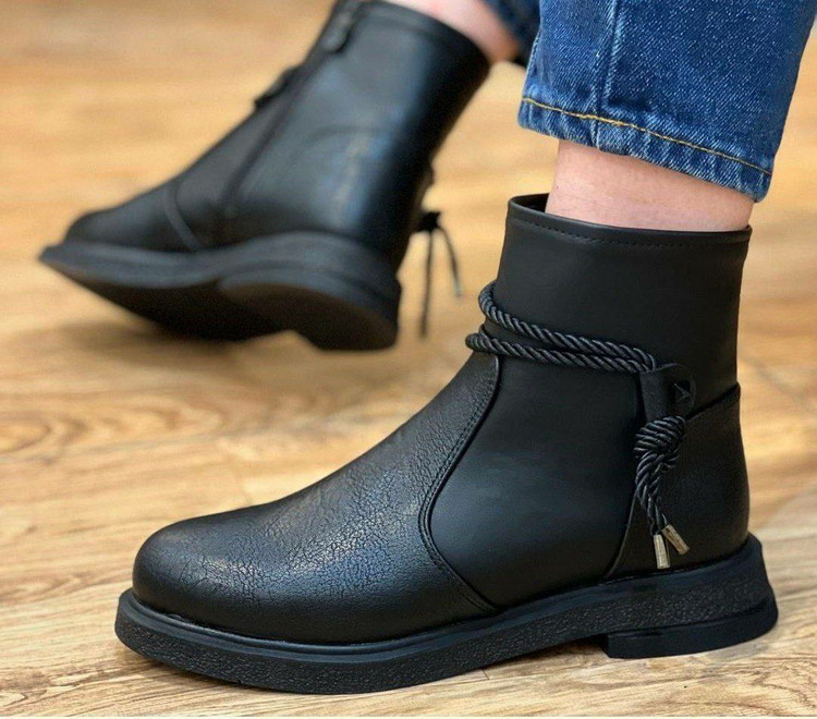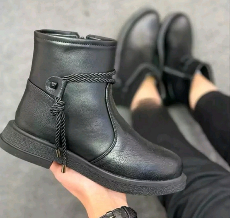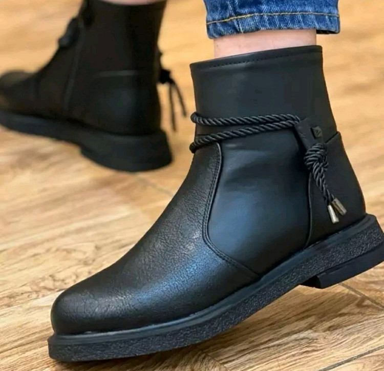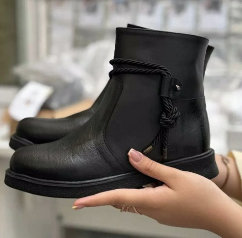 نیمبوت شیک مشکی چرم سوگو پوتین لژدار زیره نشکن زنانه نیم بوت ( 516 )