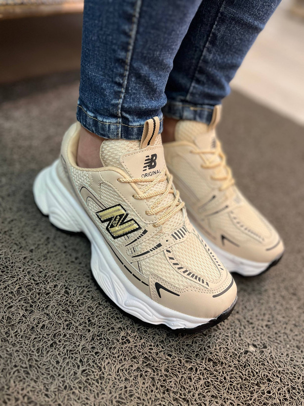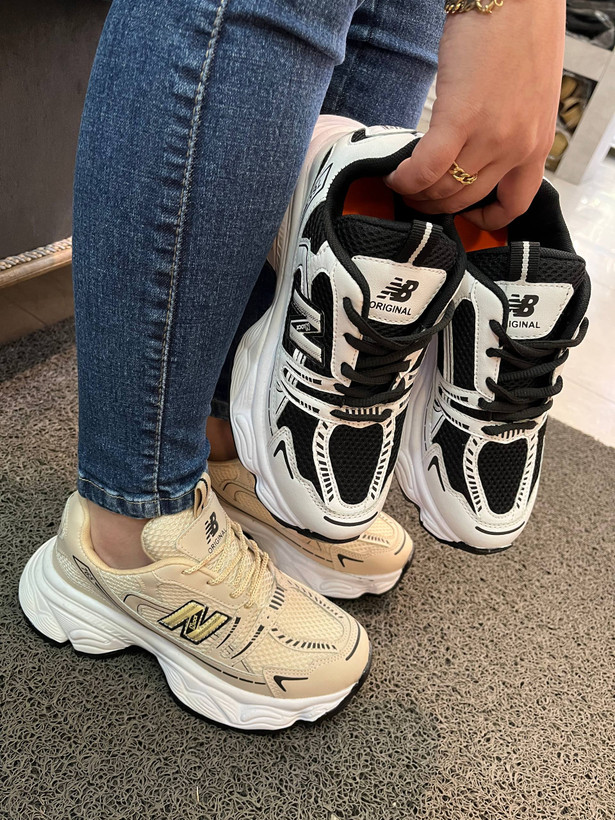 کتونی نیوبالانس جدید شیک لژدار کفش ونس اسپرت مشکی سفید کرم زنانه ( 520 )
