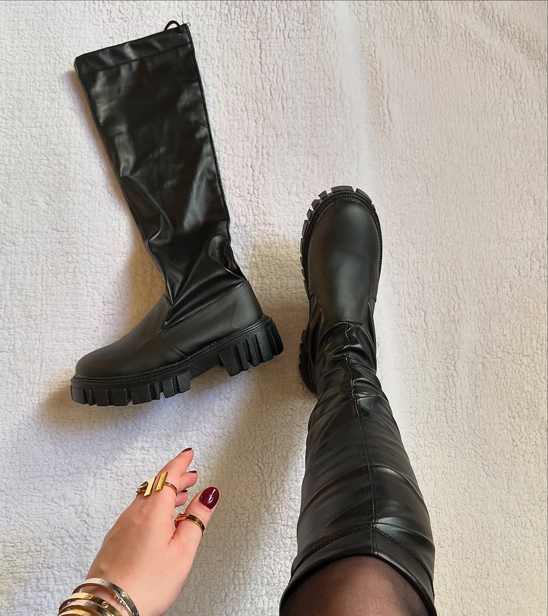 بوت بلند جورابی لژدار اسپرت مخمل و چرم طبی شیک مشکی سوییت زنانه دخترانه ( 518 )