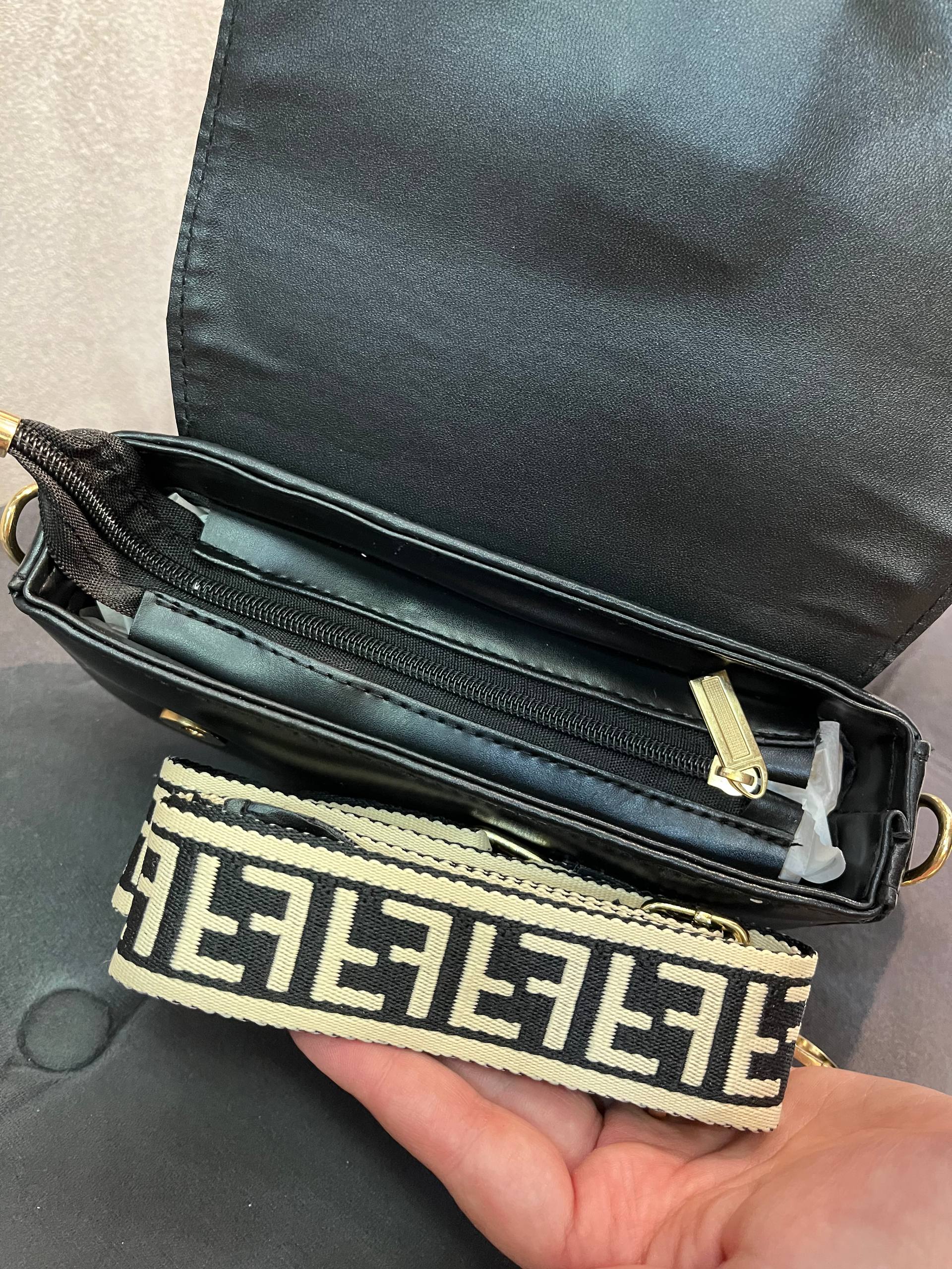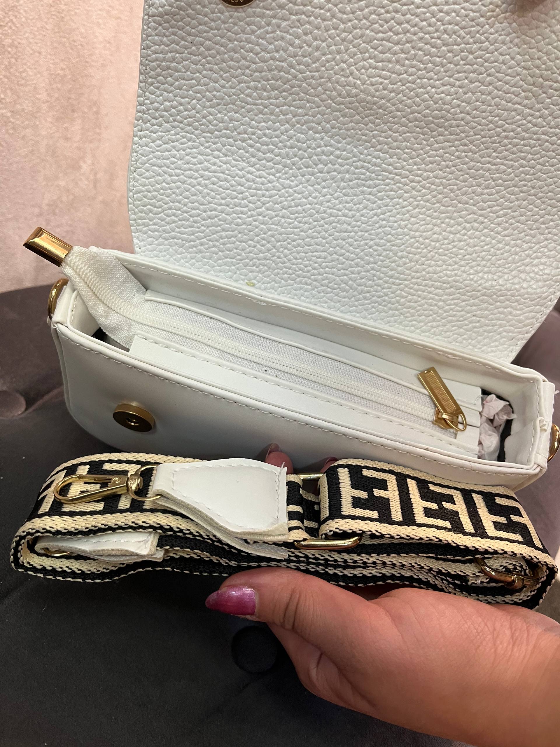 کیف فندی شیک و جادار اسپرت دوشی دستی مجلسی مشکی و سفید چرم زنانه دخترانه ( 521 )