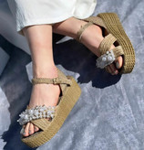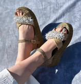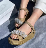 صندل کنفی مرواریدی رکابدار زنانه کفش حصیری مجلسی تابستانی لژدار ( 2700 )
