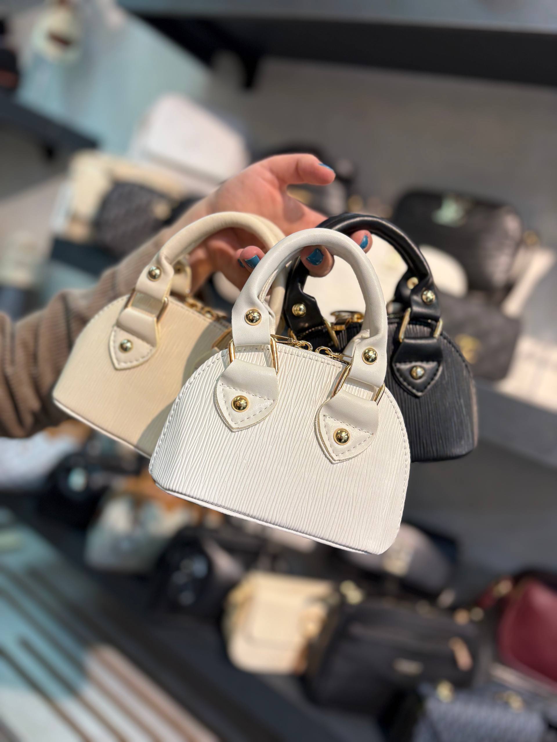 کیف مینیاتوری مجلسی شیک مشکی سفید کرم مینی بگ دوشی دستی زنانه ( 538 )