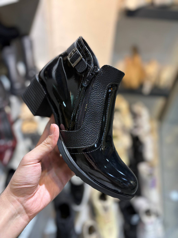حراج نیمبوت تک سایز ۴۰ چرم ورنی نیم بوت پوتین پاشنه دار زنانه ( 608 )