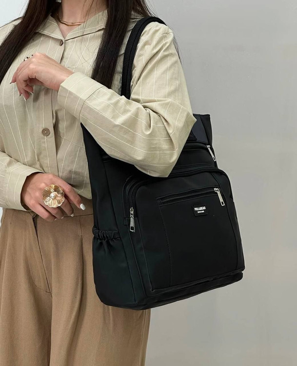 کیف بزرگ و جادار شیک مشکی ضدآب برزنت دانشجویی زنانه ( 612 )