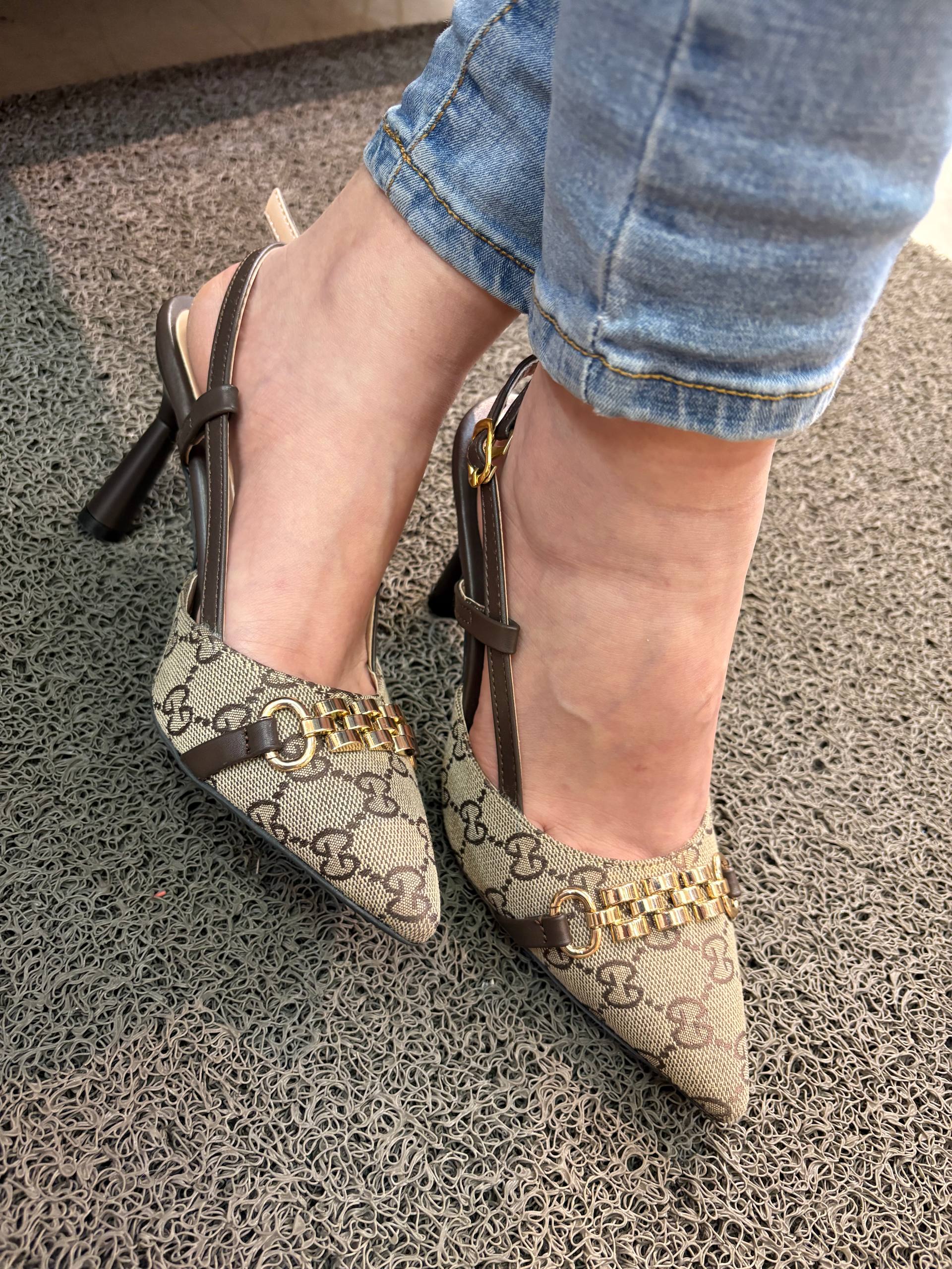 پاشنه بلند گوچی 👠 ✔جنس رویه کتان گوچی درجه یک ✔پاشنه ۷ سانت و زیره دافوس ✔قالب استاندارد و سایزبندی ۳۶ تا ۴۱