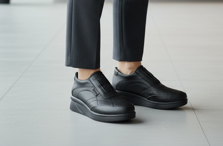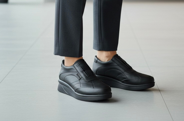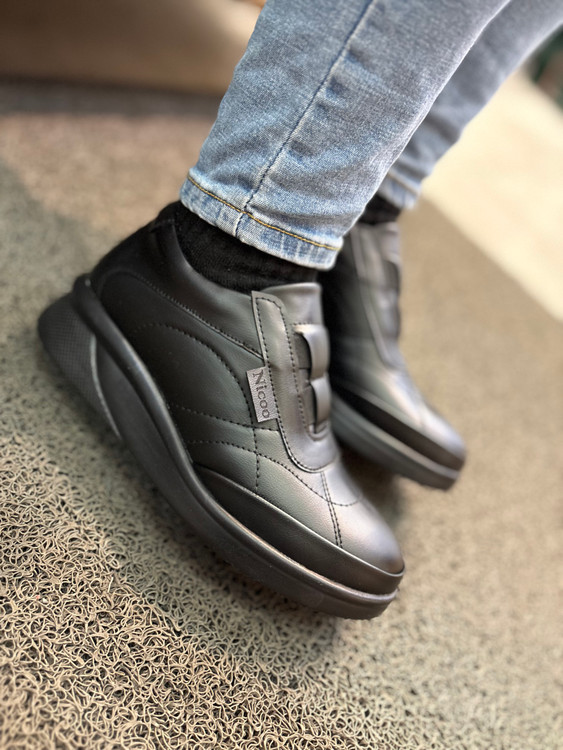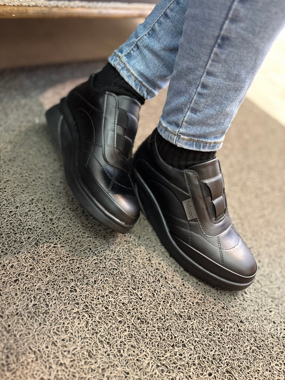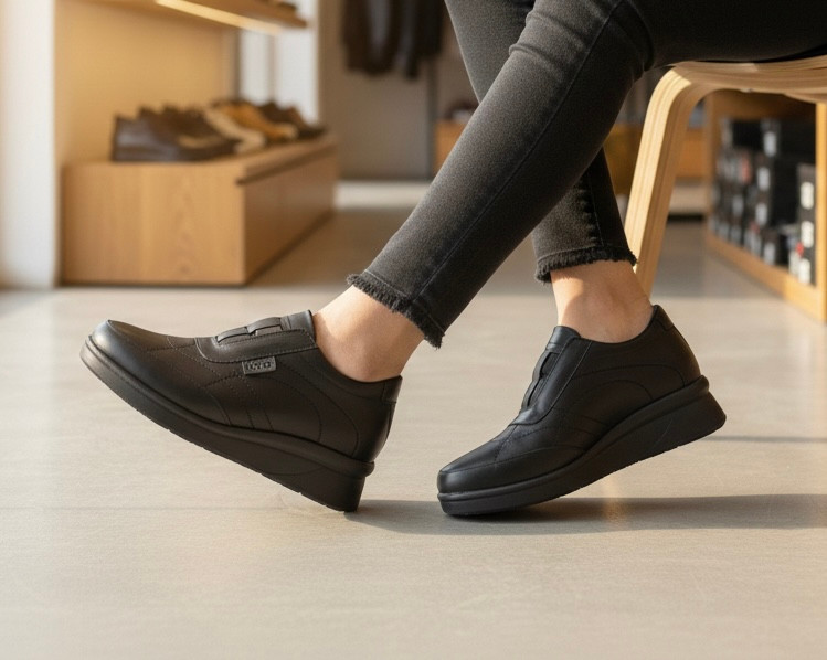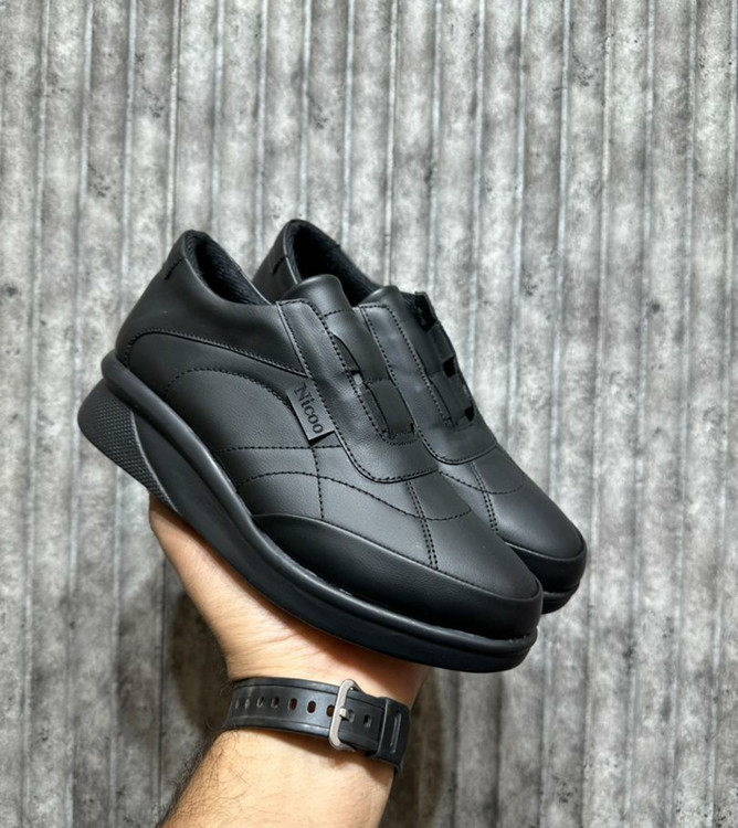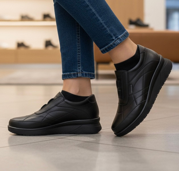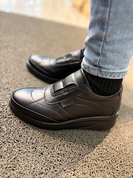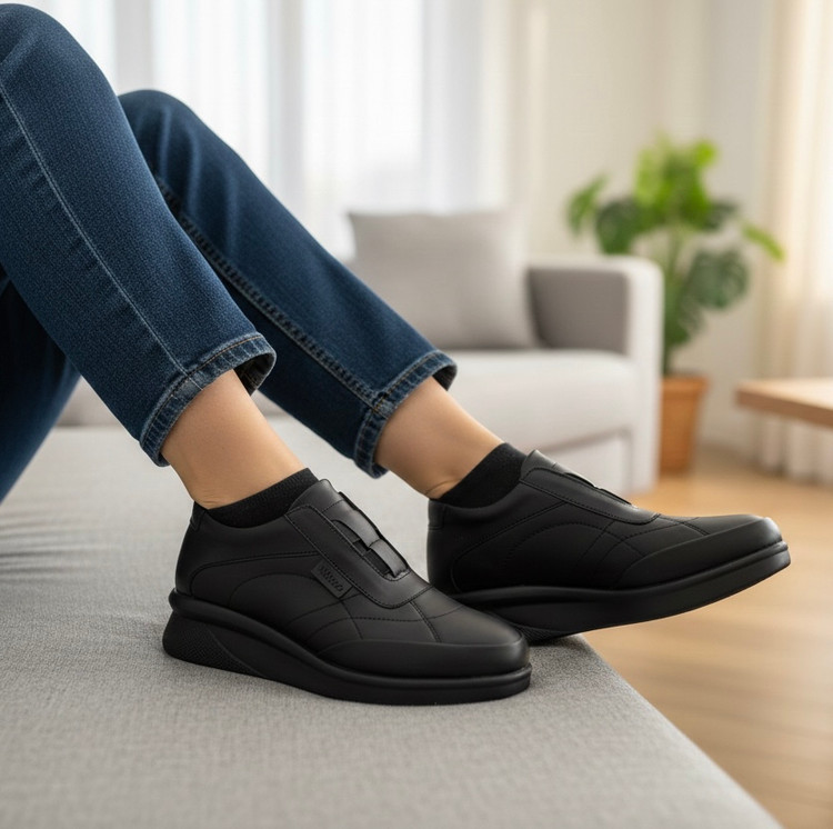 کتونی طبی اداری و کارمندی مشکی چرم ساده کلاسیک لژدار زنانه ونس کفش ( 636 )