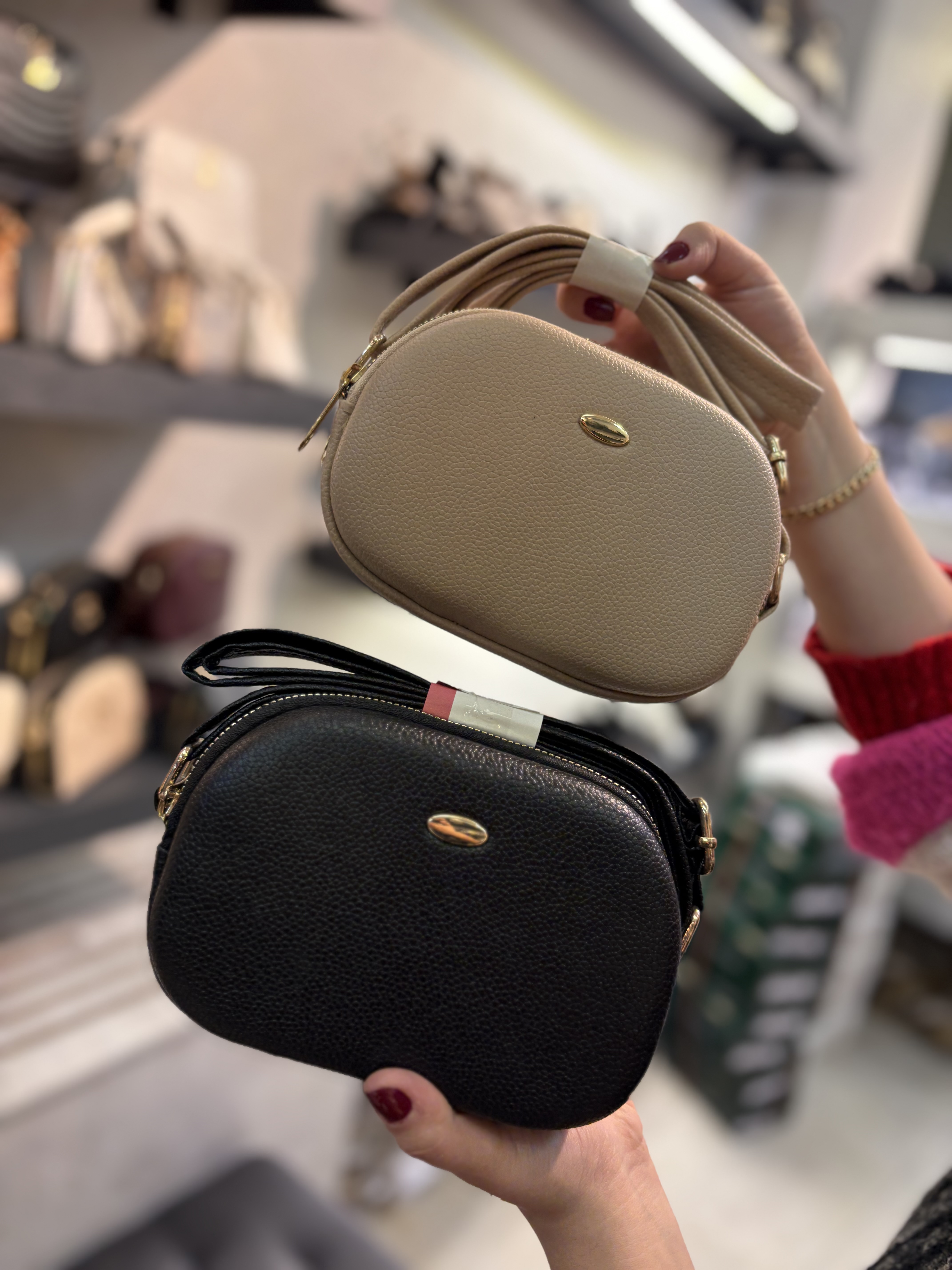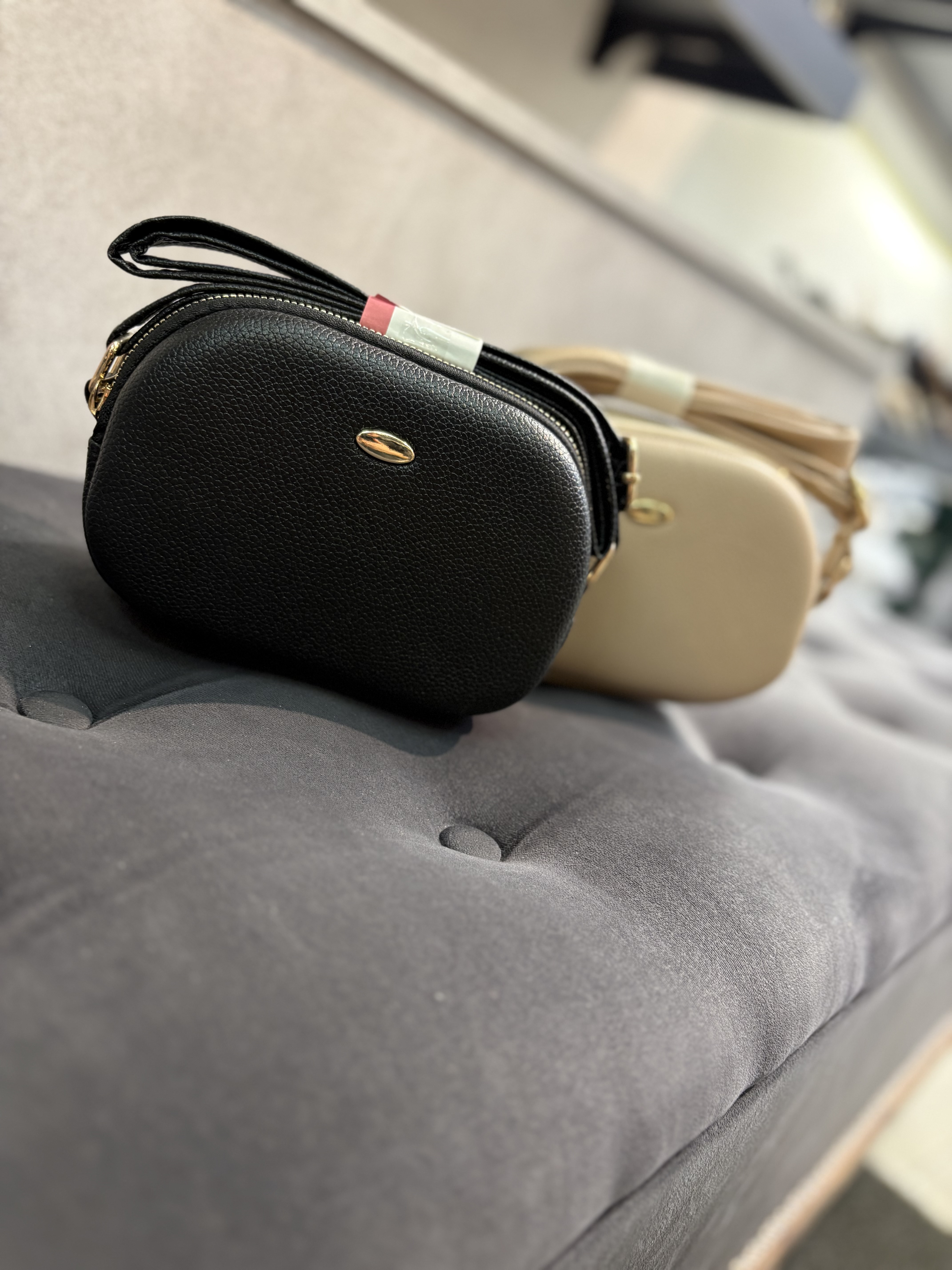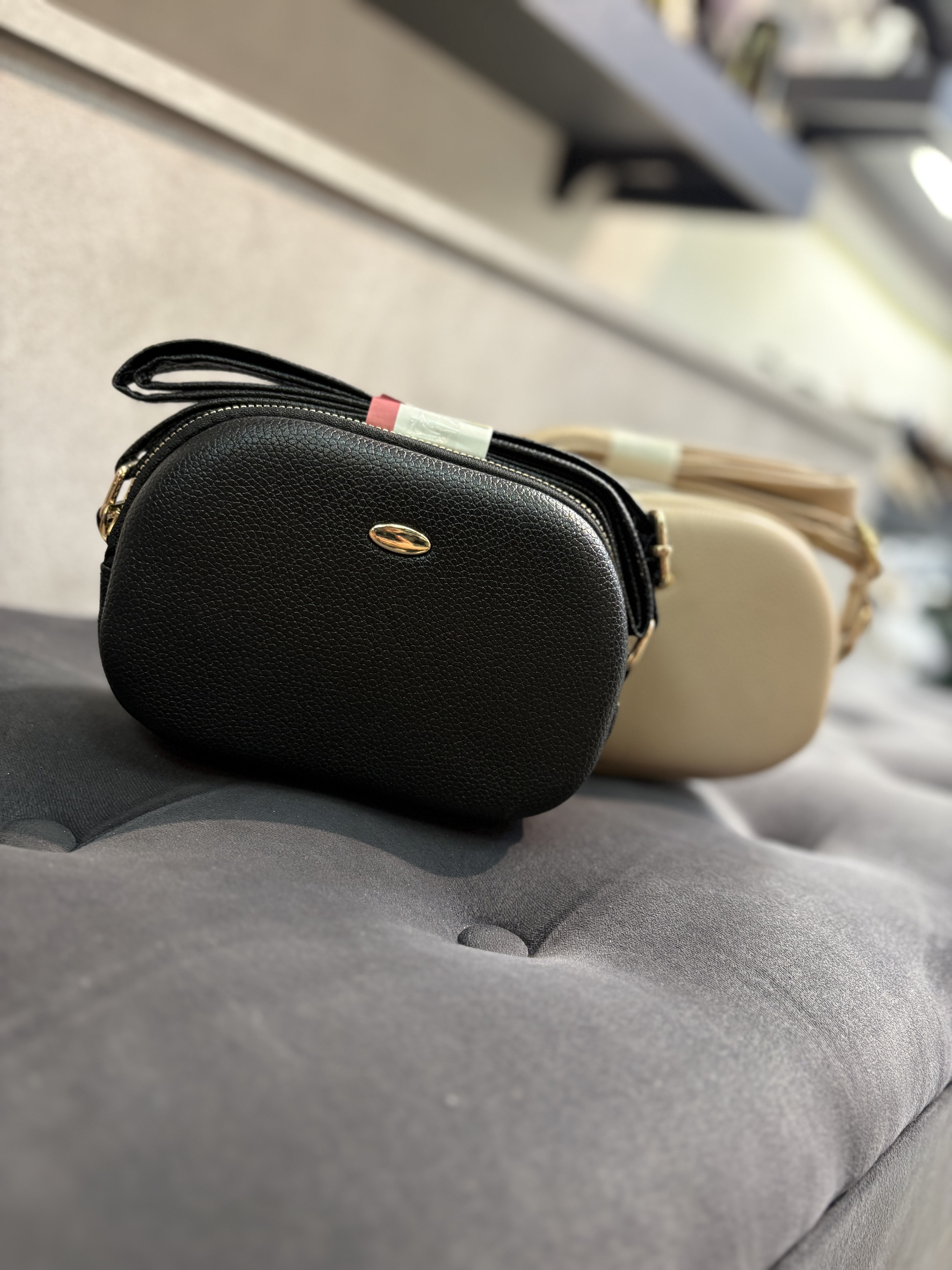 کیف کوچک شیک دوشی و دستی چرم مشکی کرم شیری فانتزی زنانه مجلسی ( ۸۰۴ )