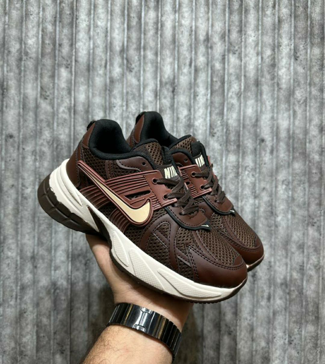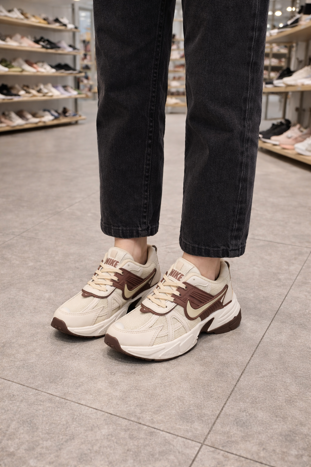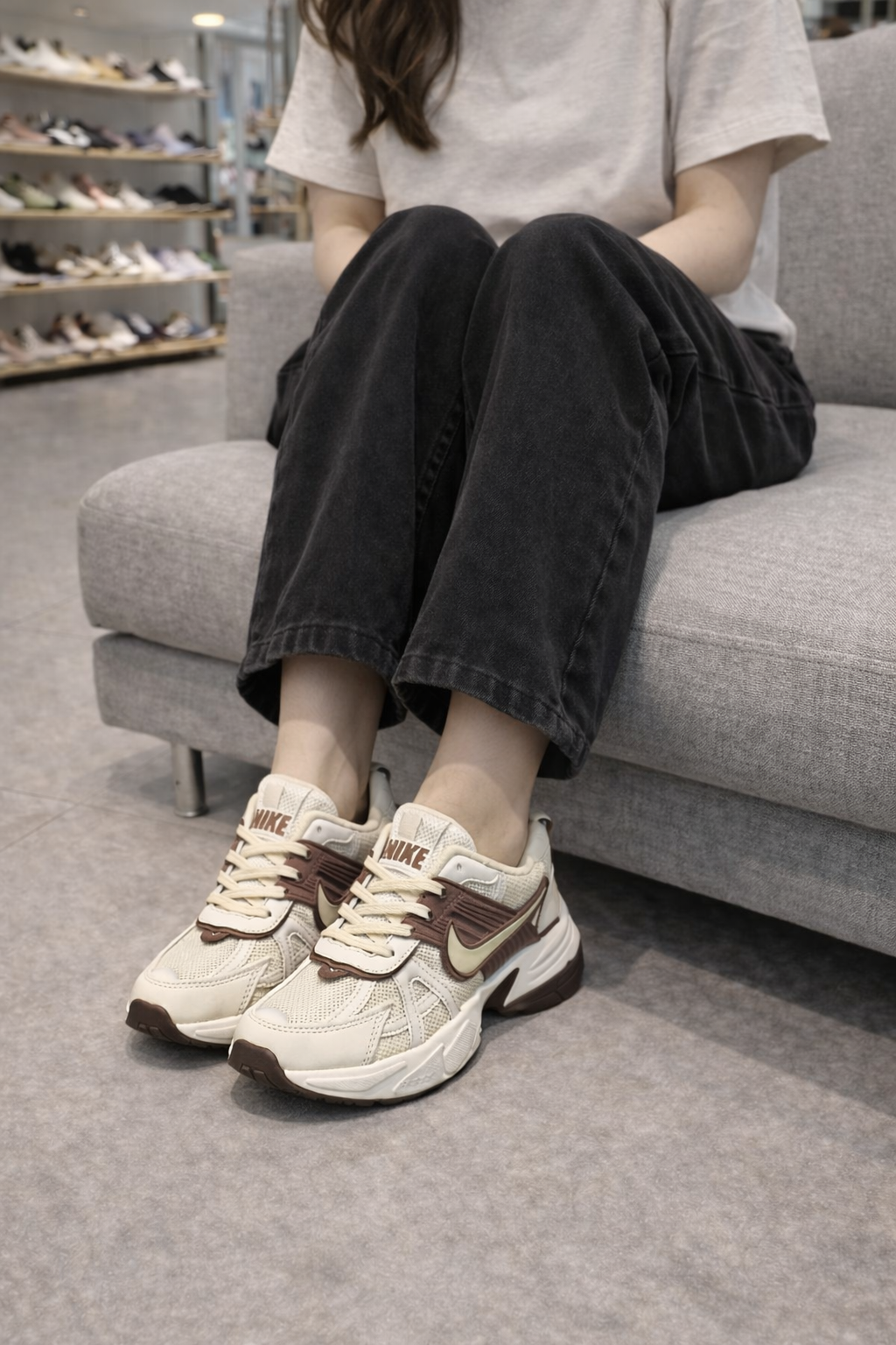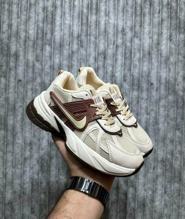 کتونی نایک V2K لژدار شیک مشکی سفید کرم قهوه ای کفش اسپرت زنانه ( 817 )