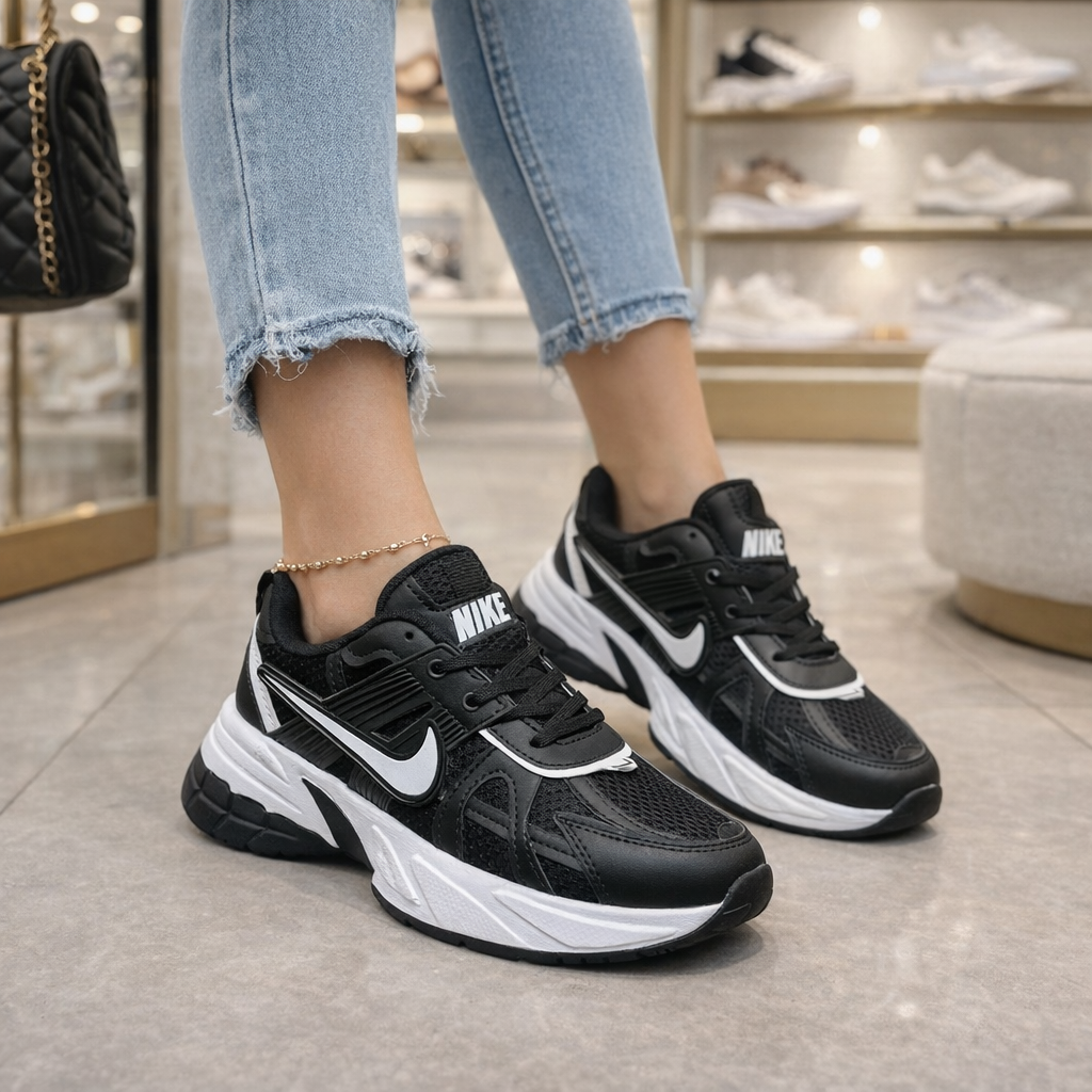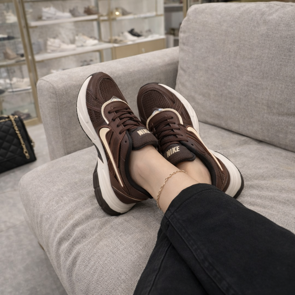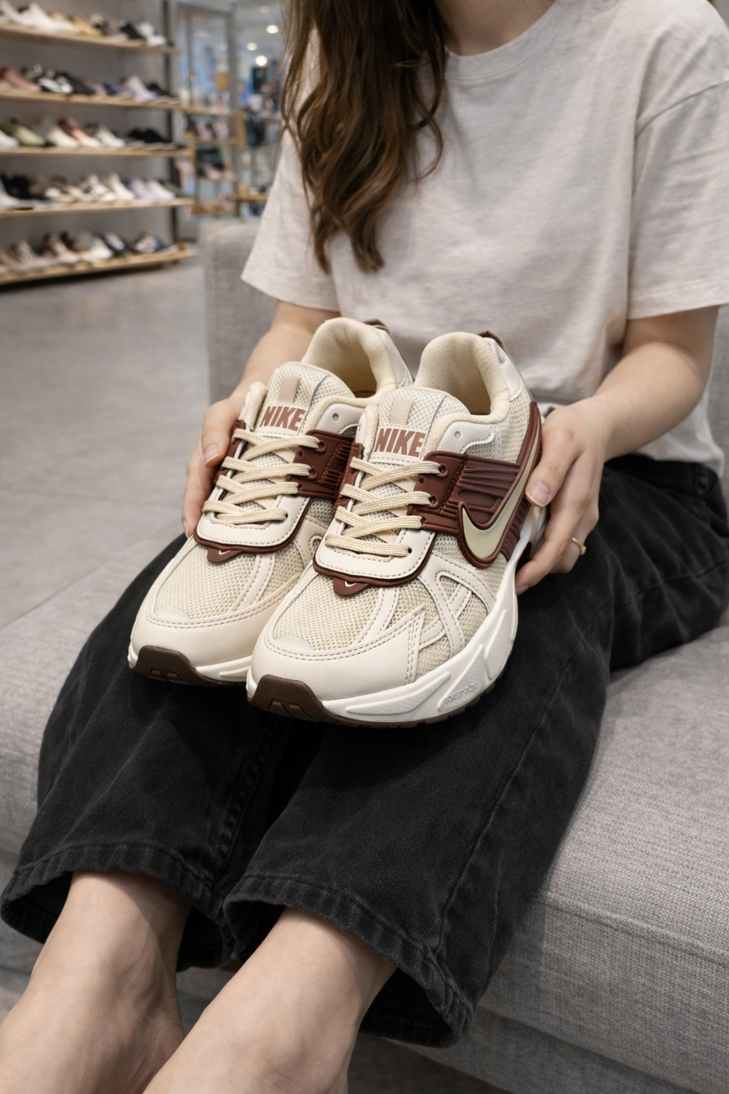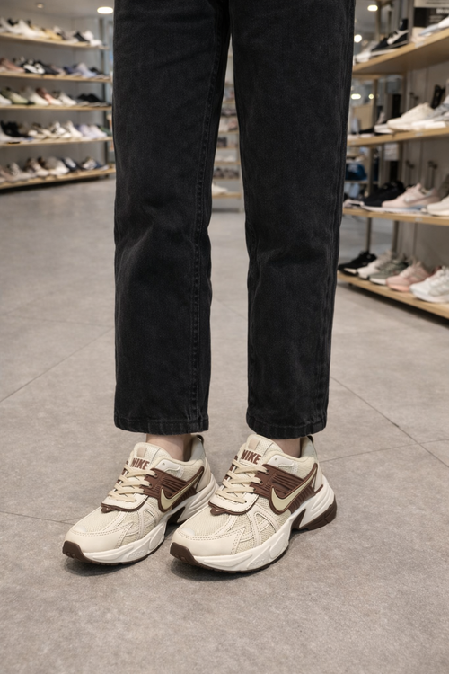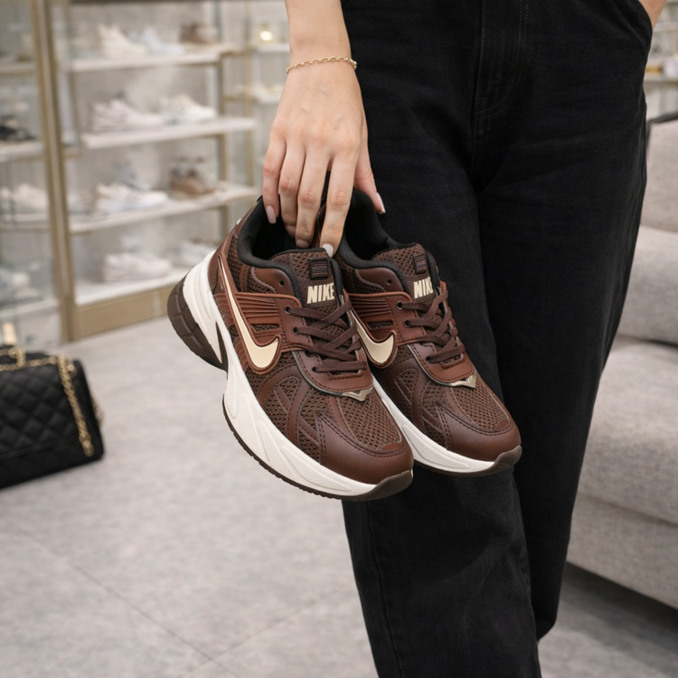 کتونی نایک V2K لژدار شیک مشکی سفید کرم قهوه ای کفش اسپرت زنانه ( 817 )
