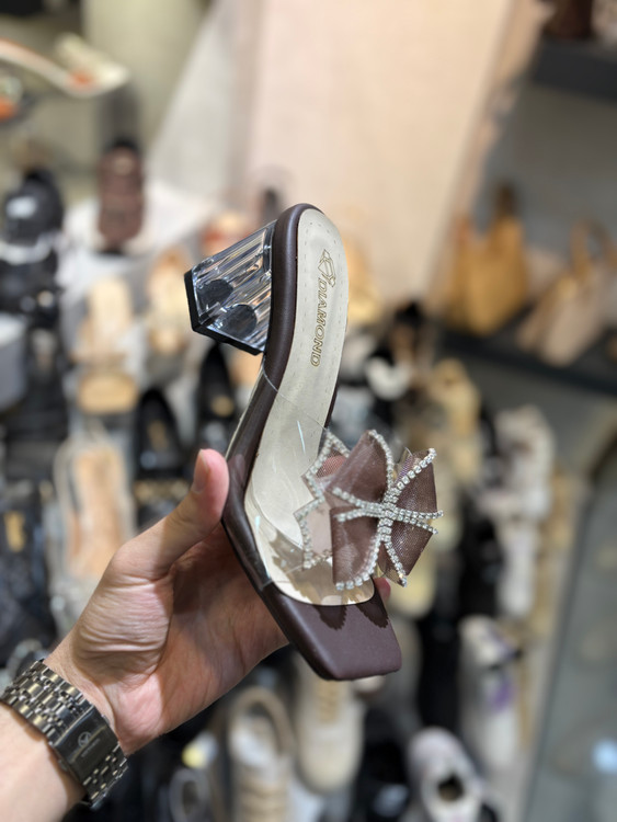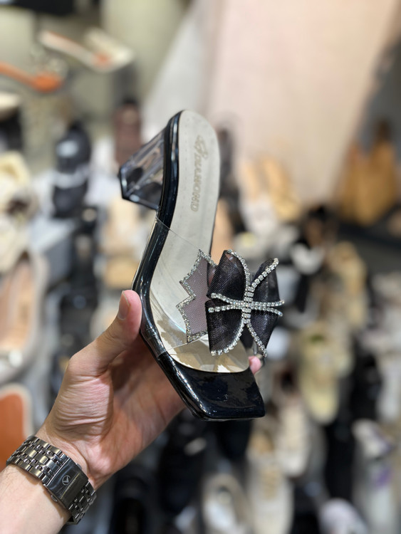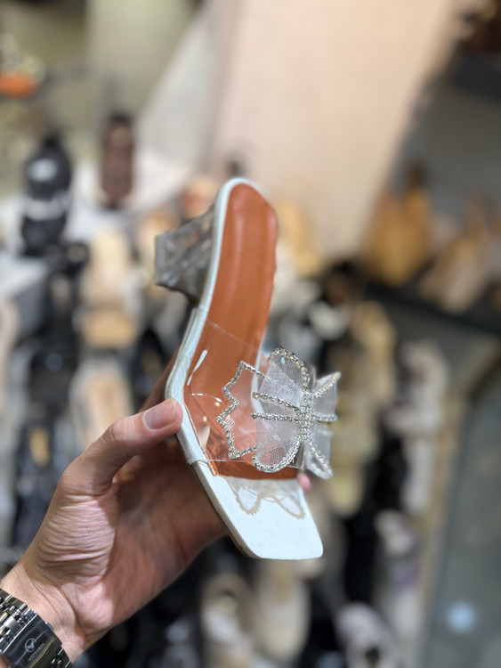 صندل طلقی پاپیونی پاشنه بلند مشکی سفید کرم قهوه ای کفش مجلسی زنانه ( 871 )