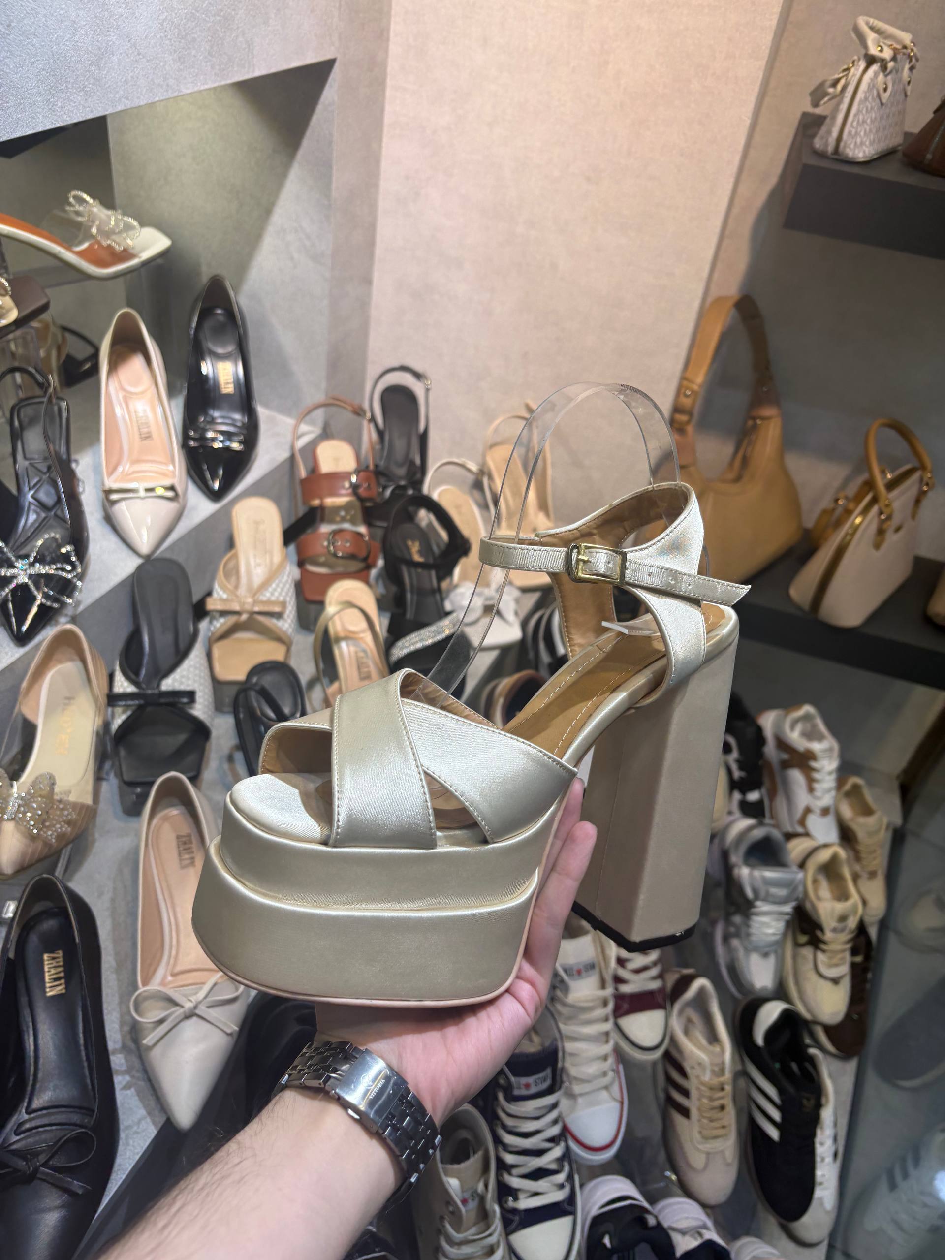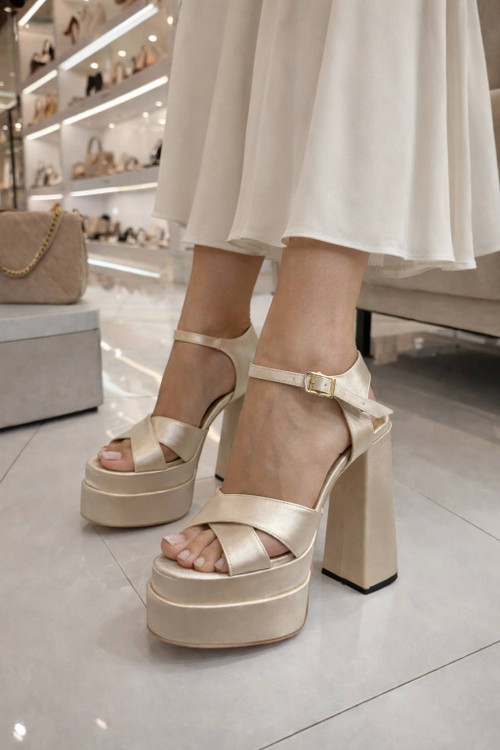 حراج صندل تک سایز پاشنه ۱۵ سانت ساتن کرم لژدار زنانه ( 848 )