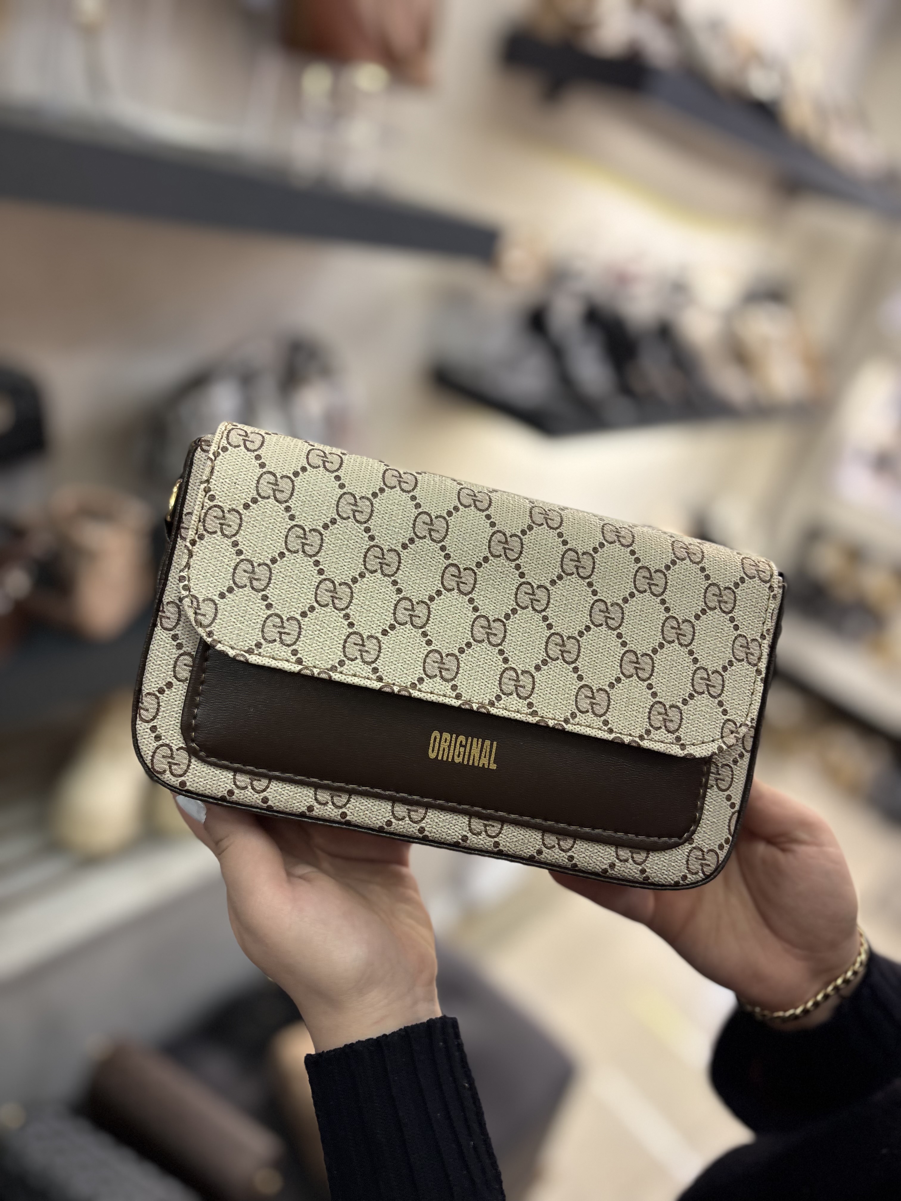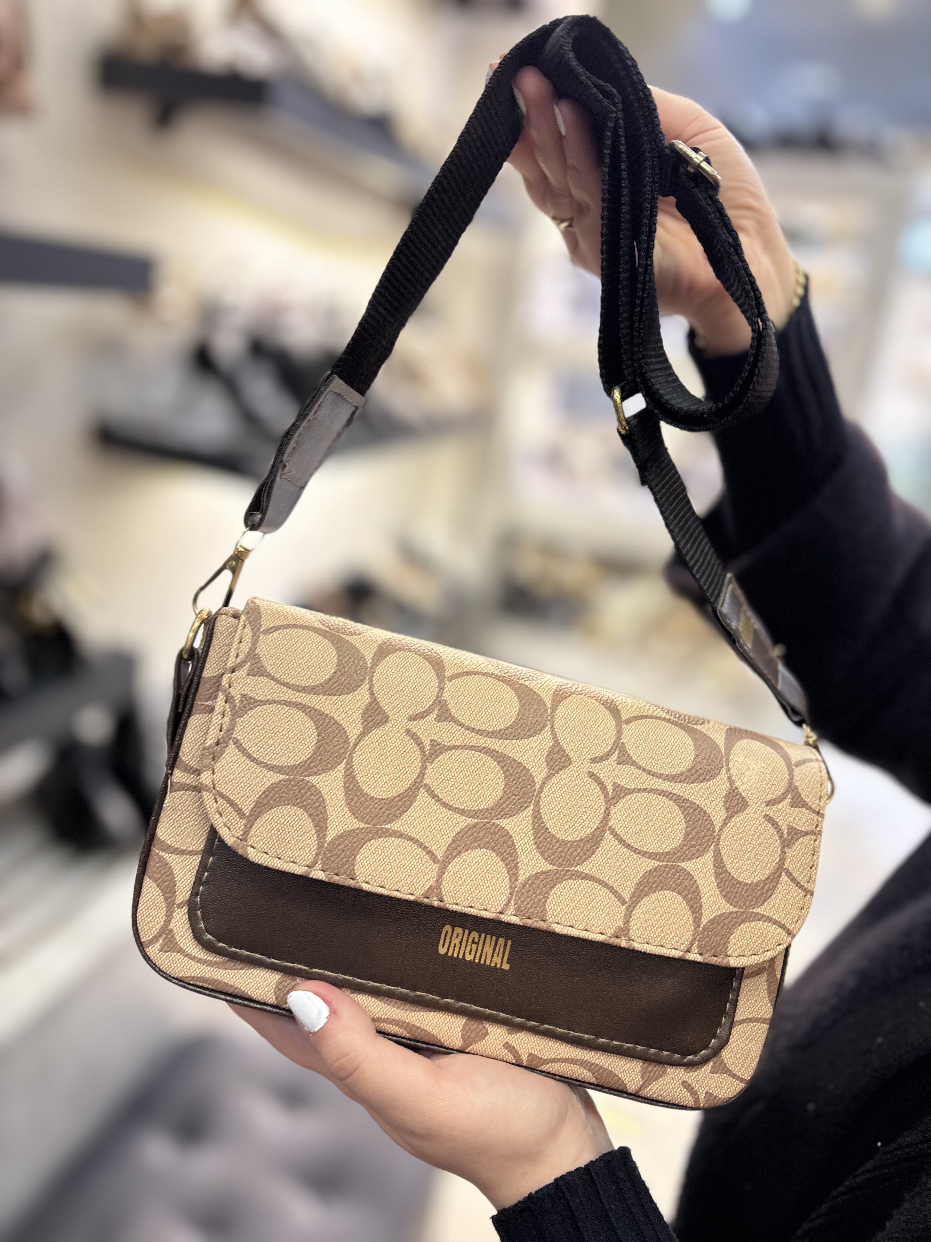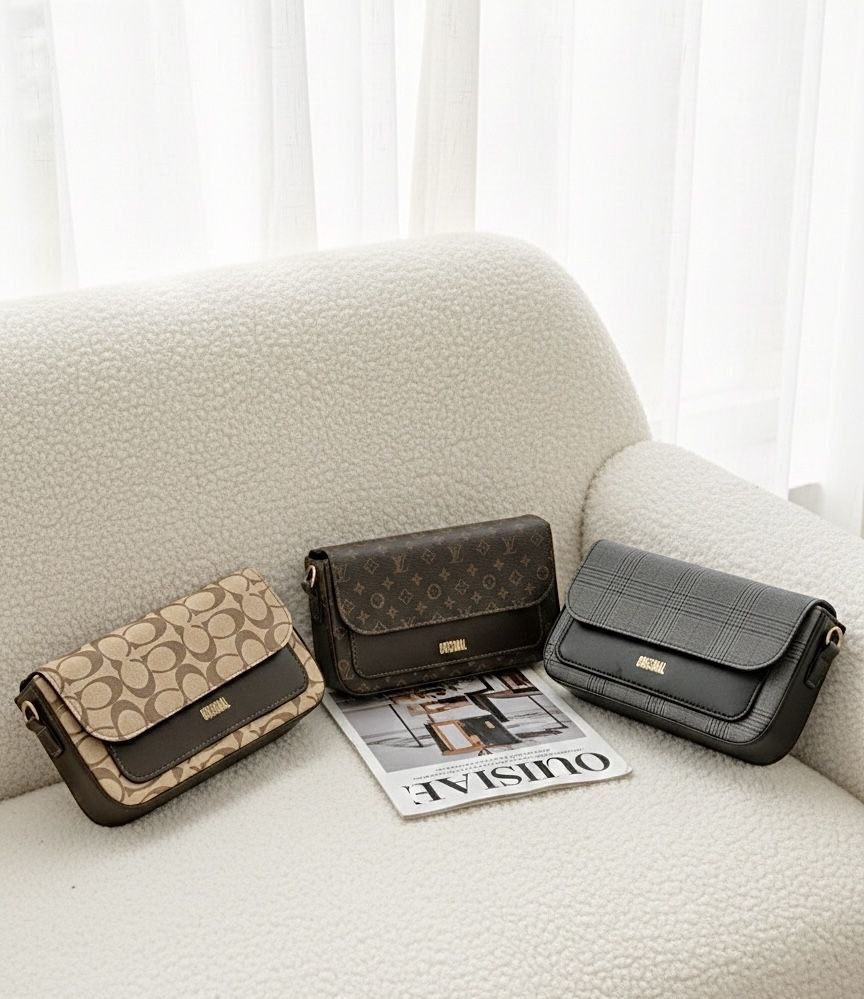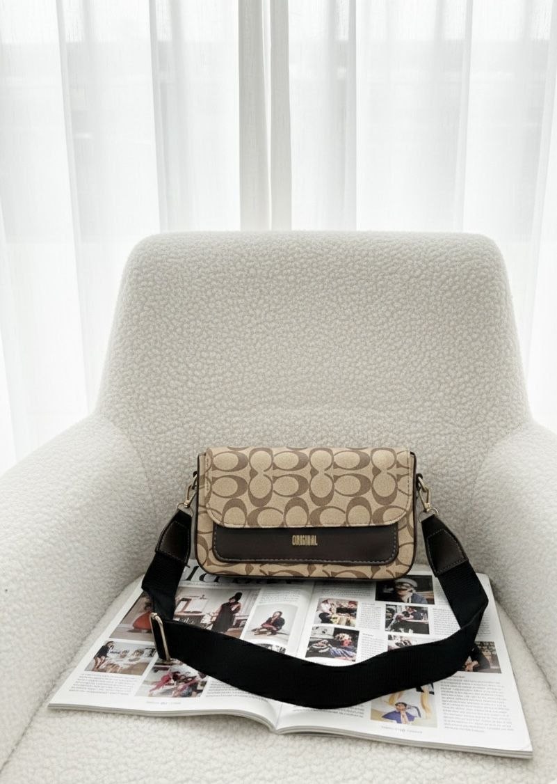 کیف طرحدار دوشی و‌ دستی شیک پاسپورتی اسپرت مشکی کرم قهوه ای زنانه ( ۹۲۸ )