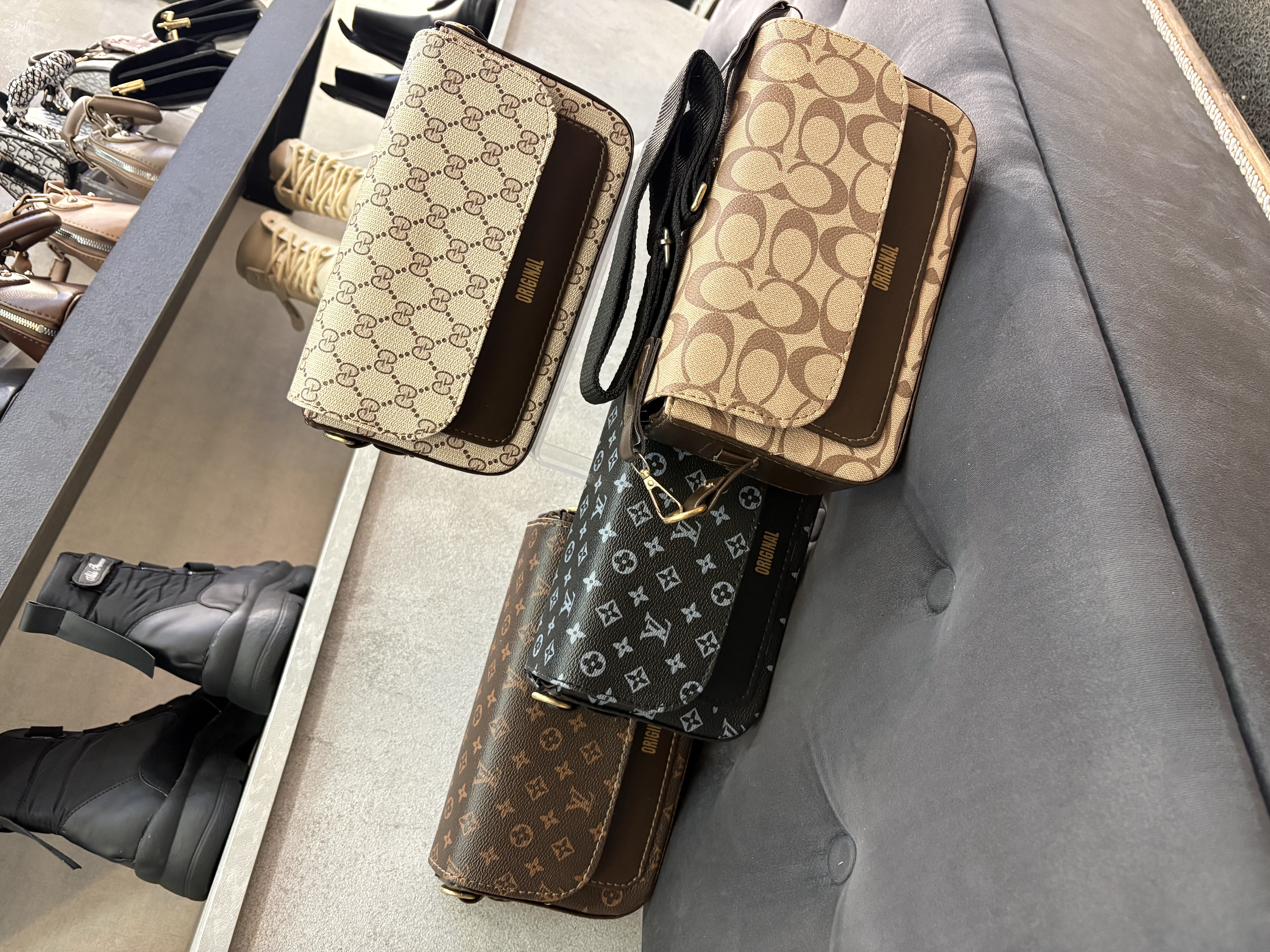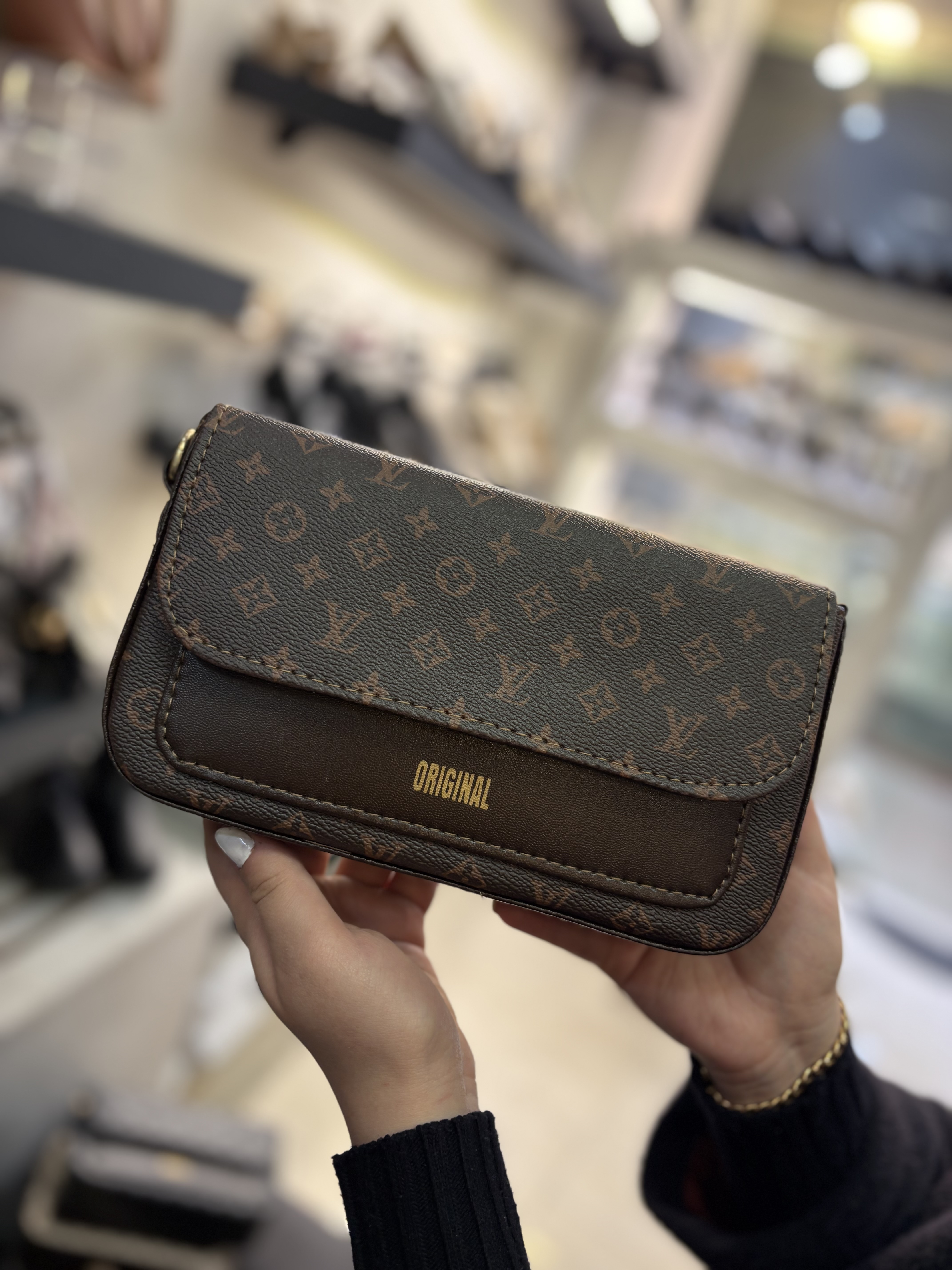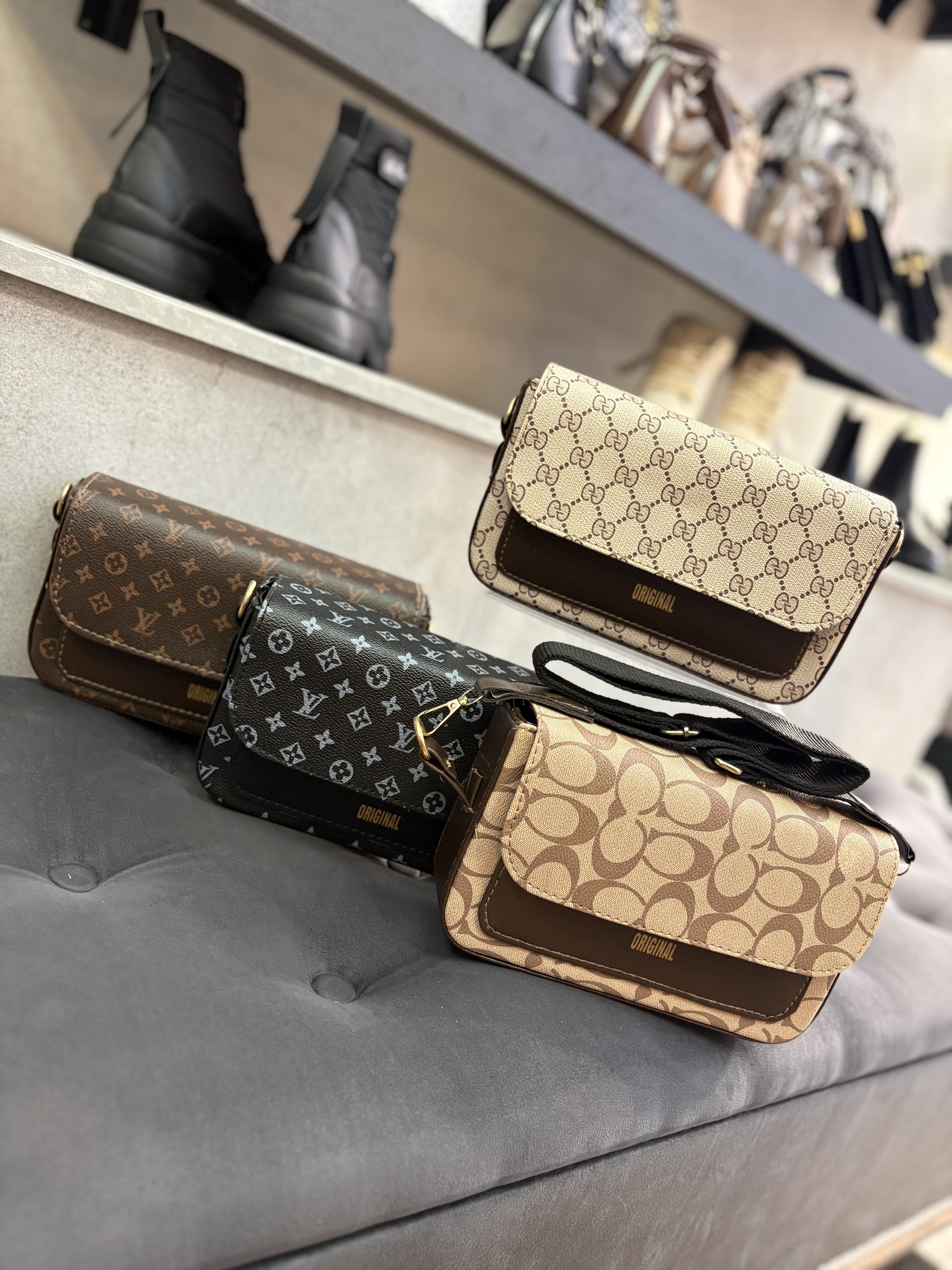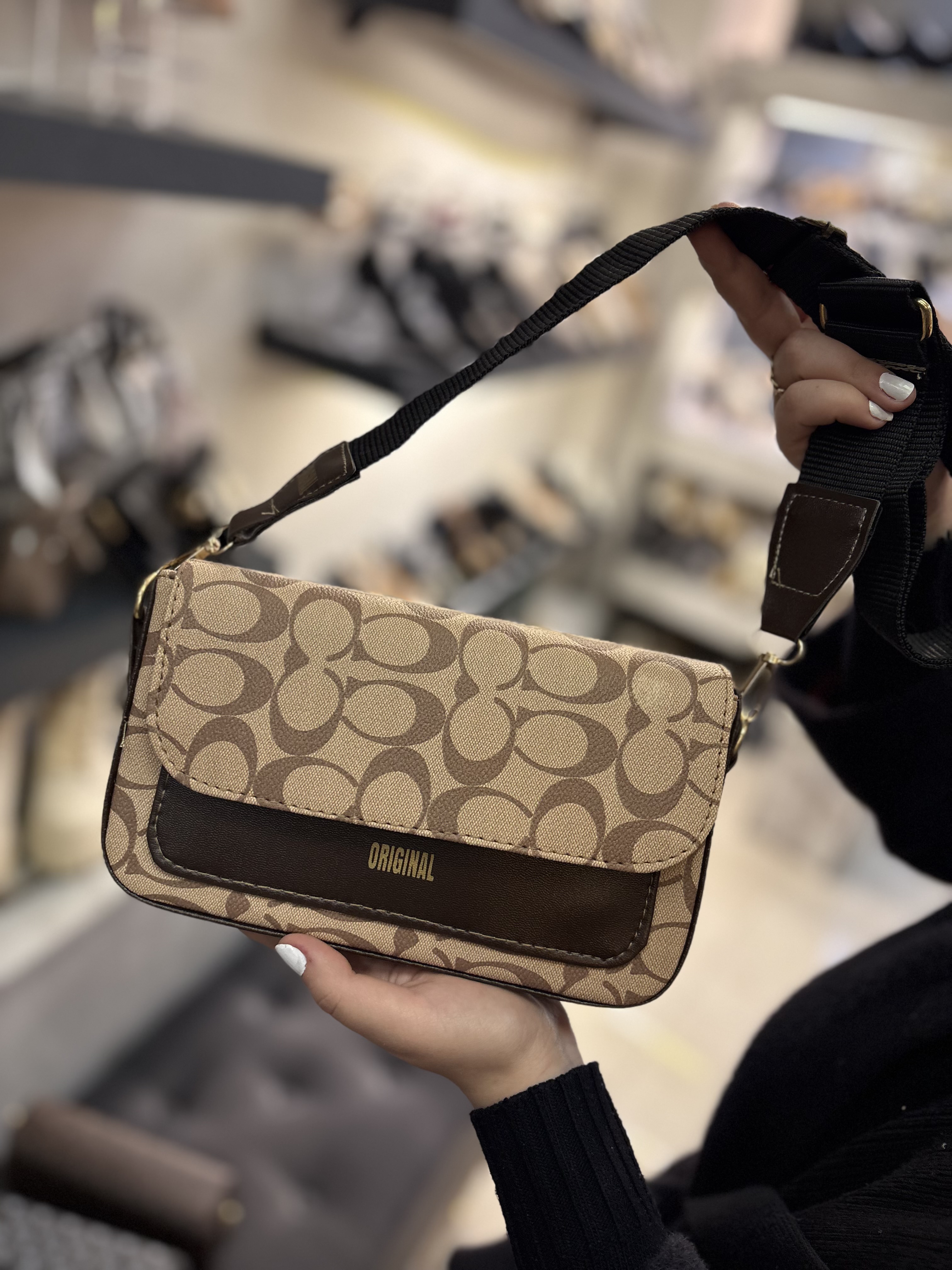 کیف طرحدار دوشی و‌ دستی شیک پاسپورتی اسپرت مشکی کرم قهوه ای زنانه ( ۹۲۸ )