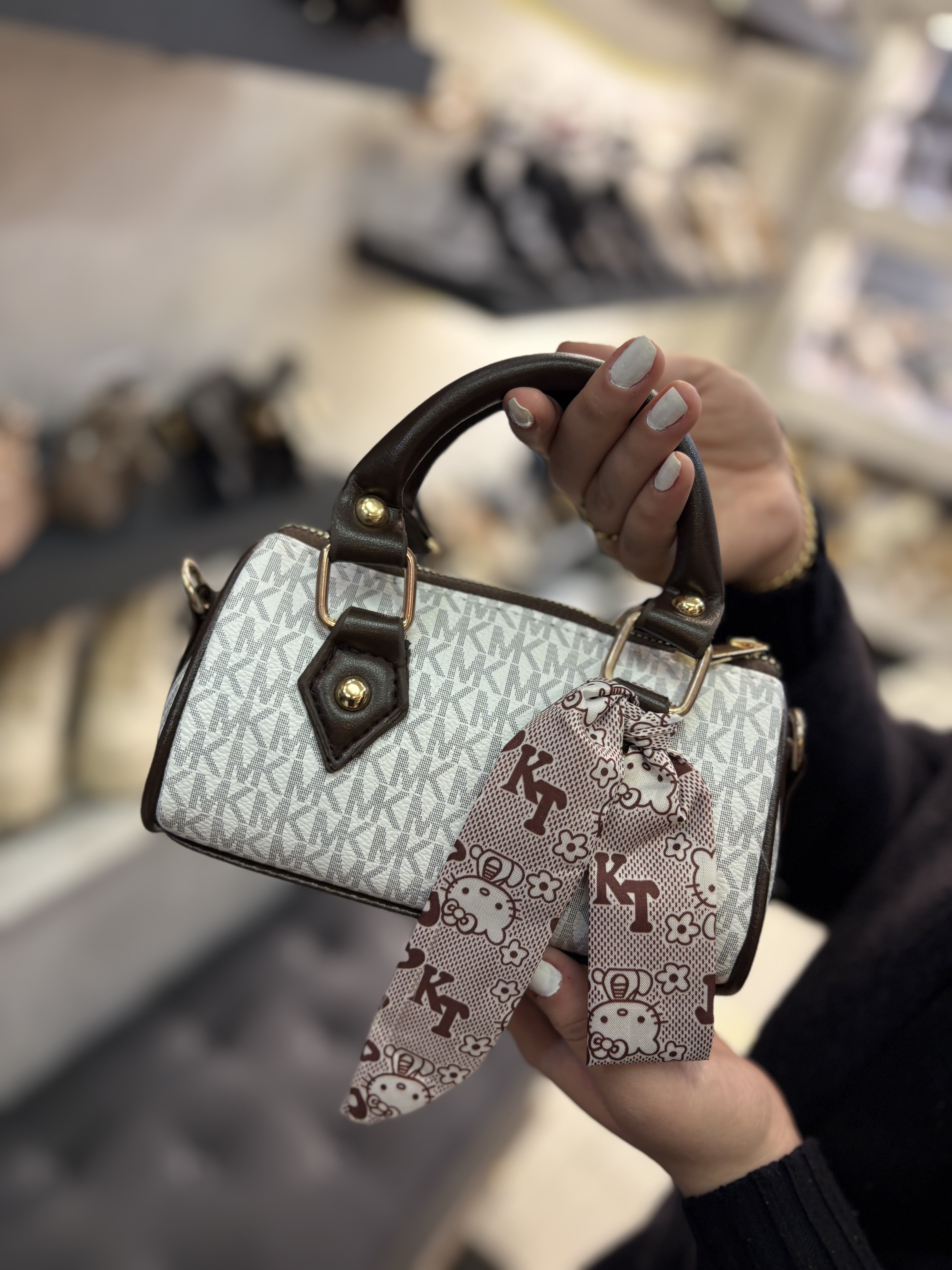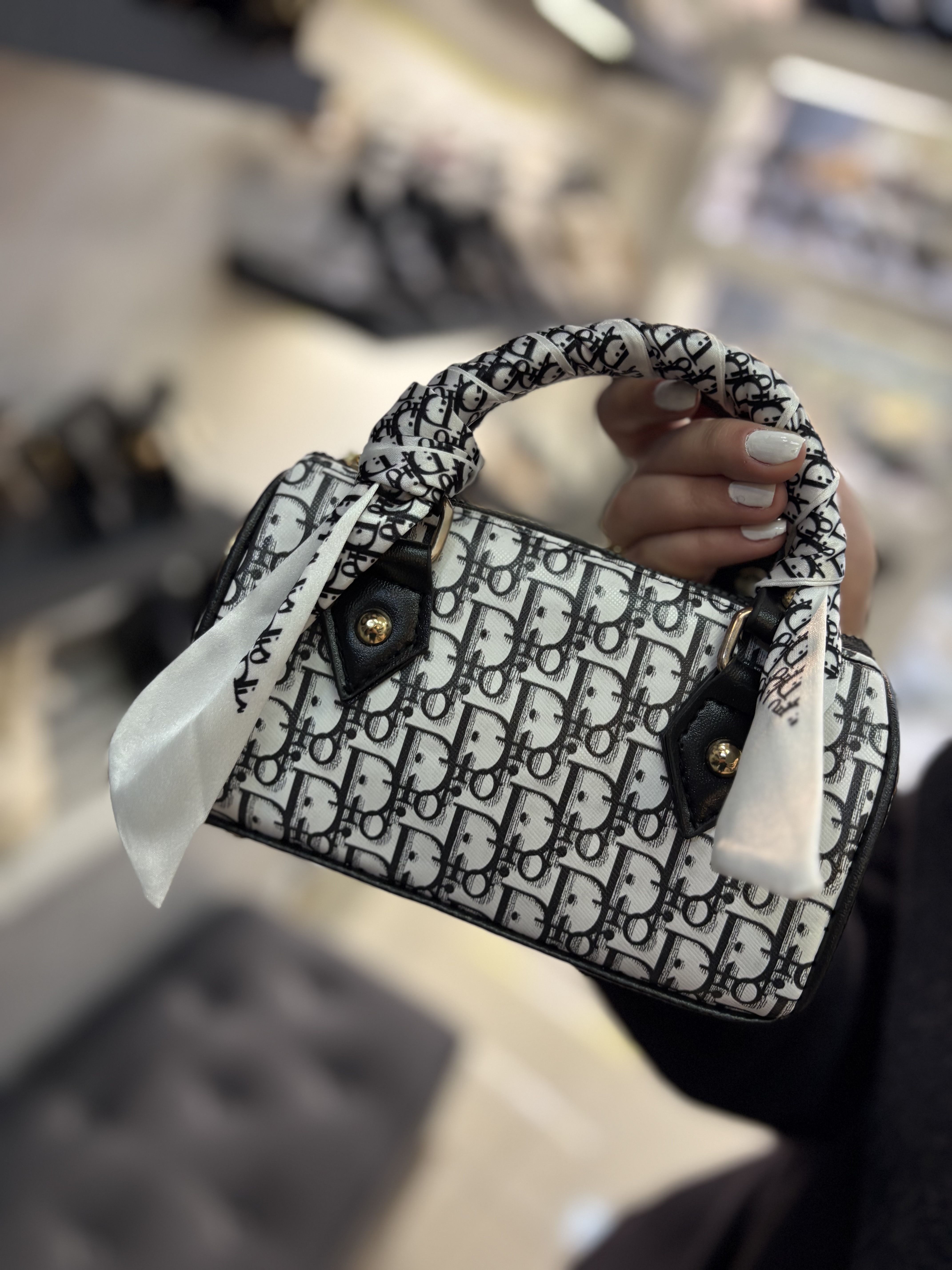 کیف فانتزی شیک دوشی و‌ دستی طرحدار کوچک سفید اسپورت چرم زنانه ( ۹۳۸ )