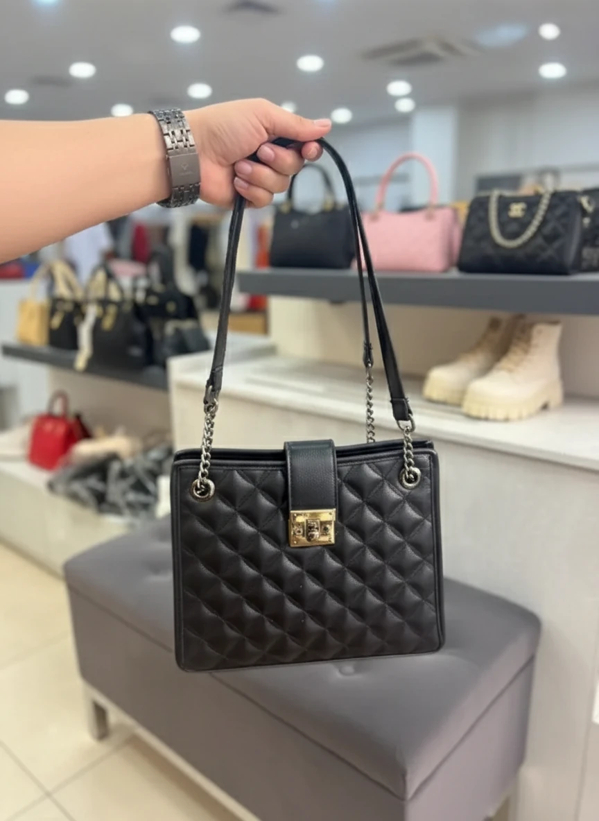 حراج کیف شیک و جادار شنل دوزی شده مشکی دوشی و دستی زنانه ( 962 )