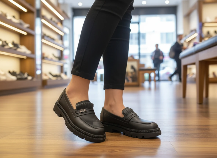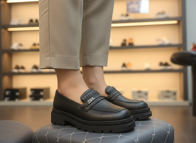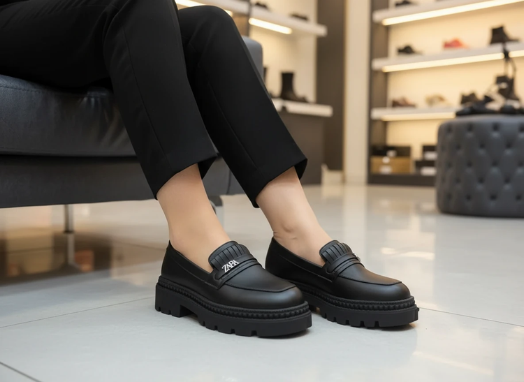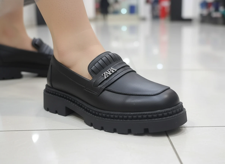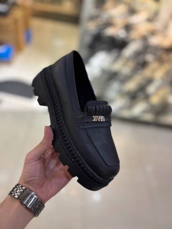 کالج شیک لژدار مشکی مات زارا طبی چرم مجلسی لوفر زنانه ( 967 )
