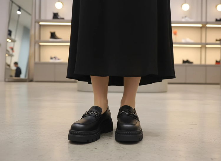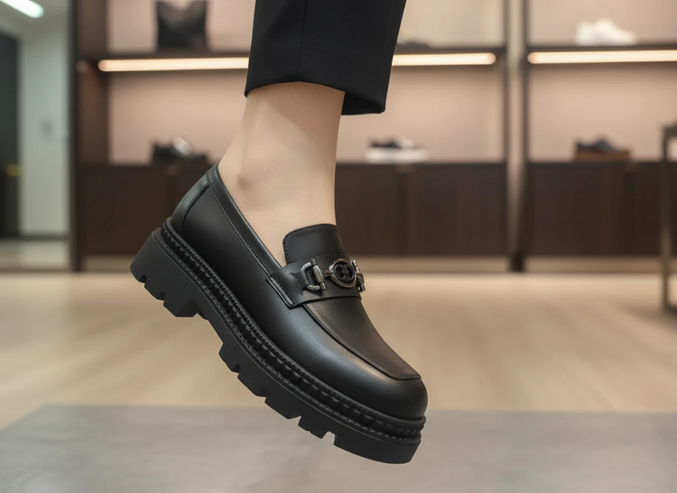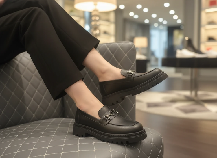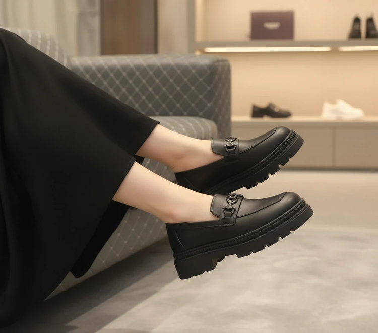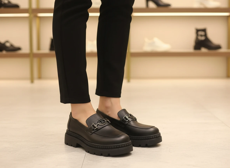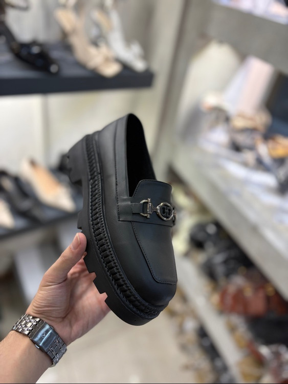 کالج شیک لژدار مشکی چرم مات راحتی کفش لوفر زنانه( 968 )