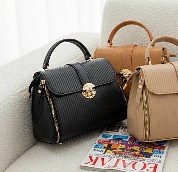کیف شیک و مجلسی دوشی و دستی مشکی کرم عسلی زنانه ( 972 )