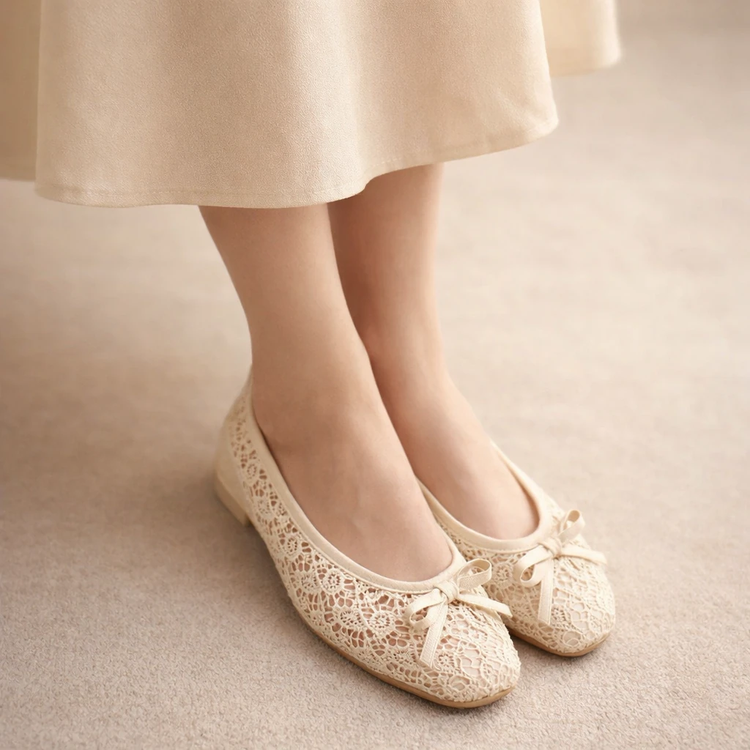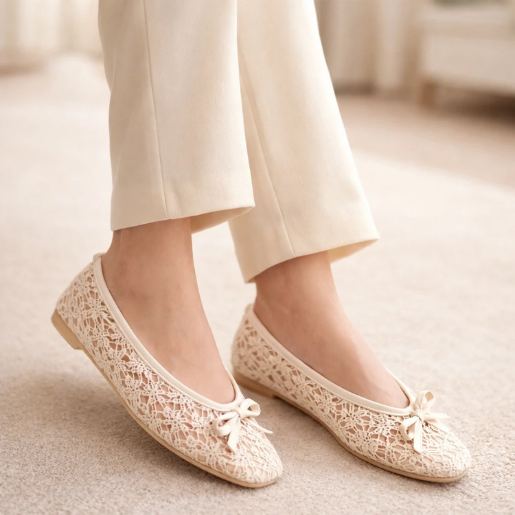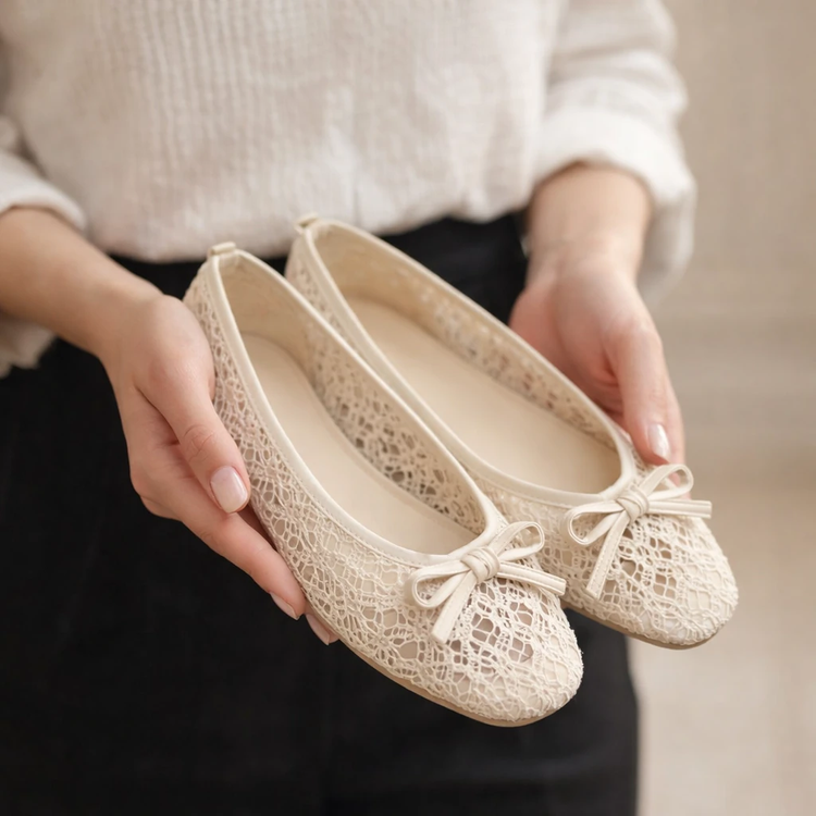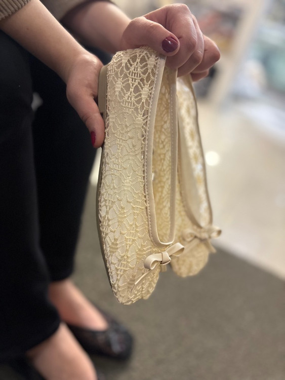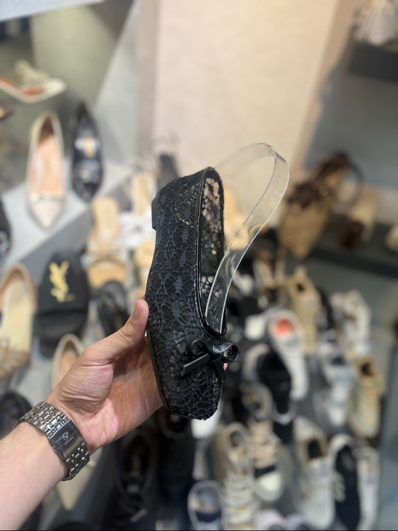 بابت گیپور شیک مجلسی مشکی و شیری توری پاپوش پاپیونی زنانه ( 997 )